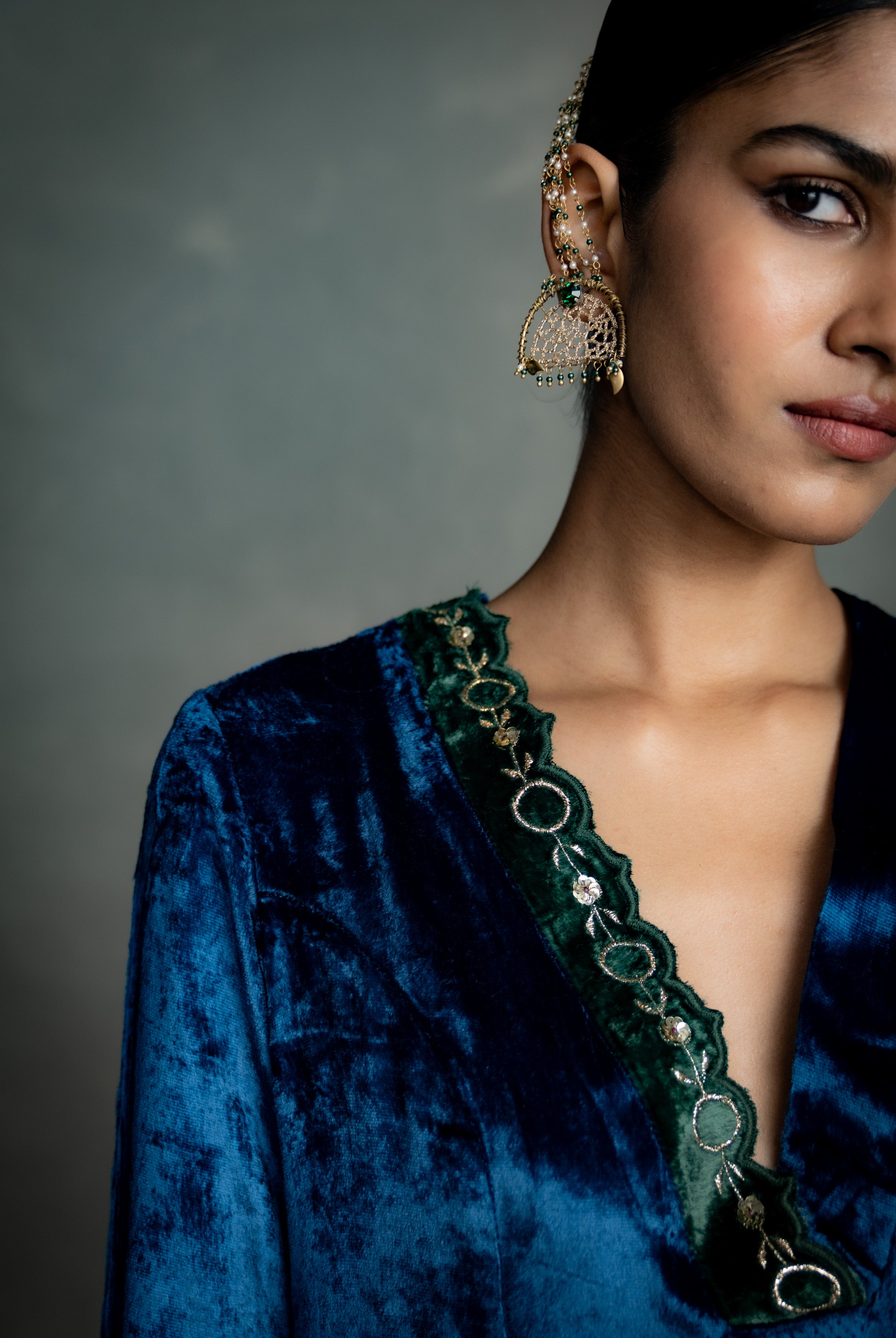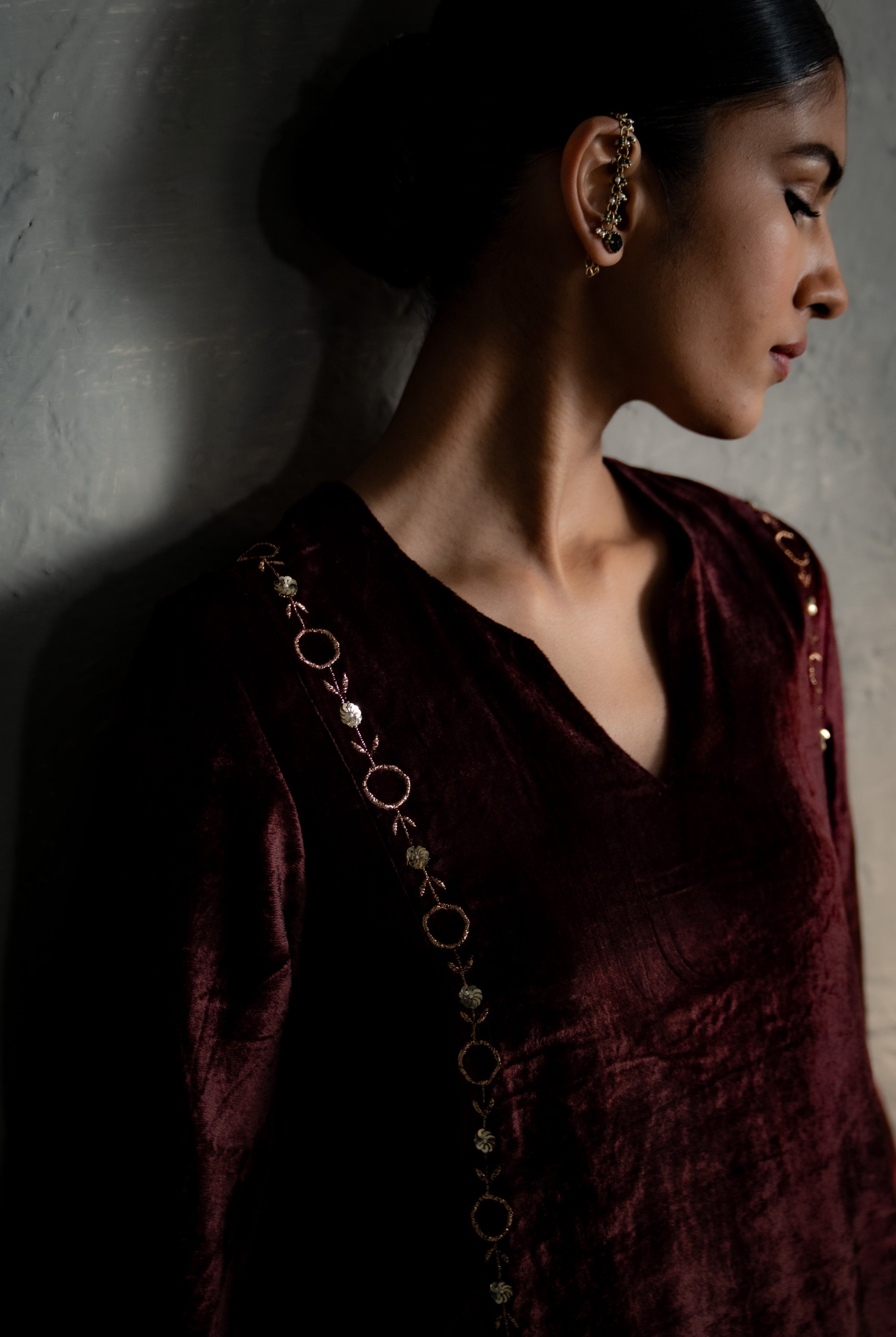 Threads of gold, whispers of time — Maaya weaves handworked Zari into modern designs, blending old-world charm with quiet sophistication.