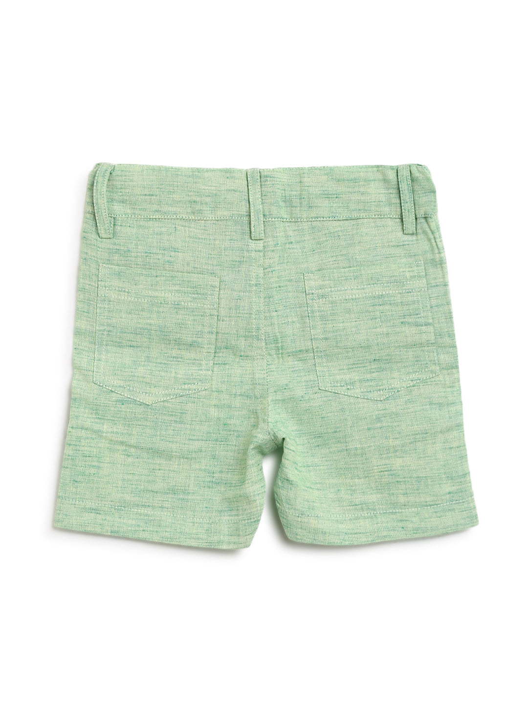 Green co-ord set consists of casual shirt, has a spread collar, short sleeves, button placket, chest pocket and straight hem. It is paired with same colour shorts which has button opening. The combination makes for a smart look for the little angels.