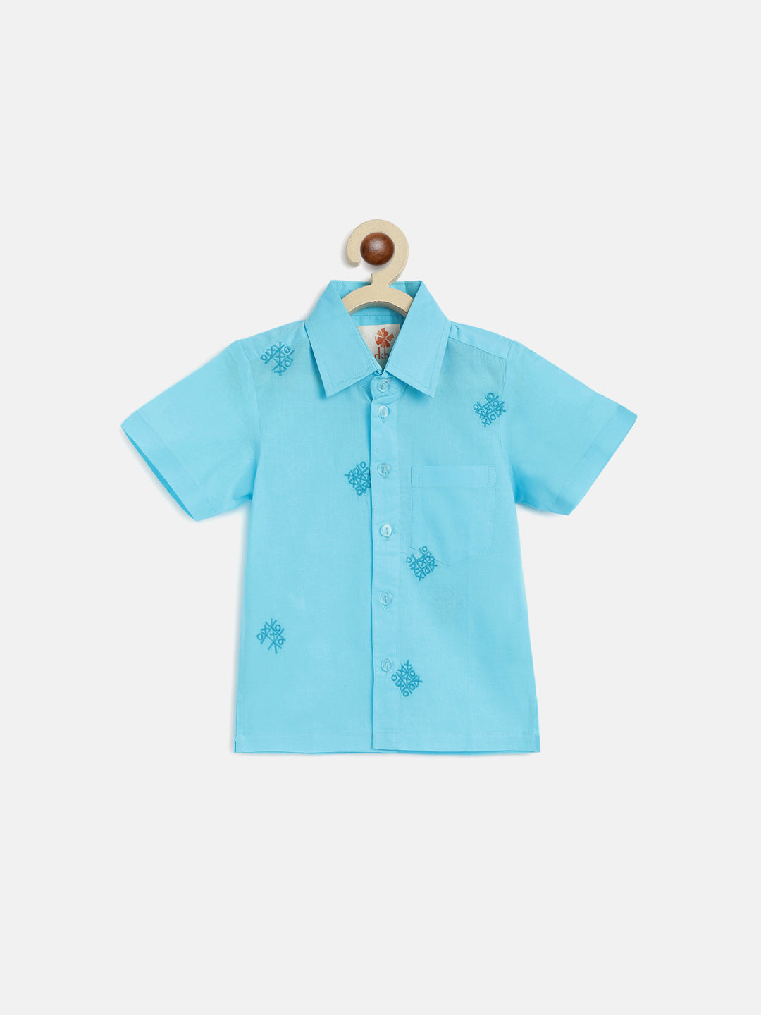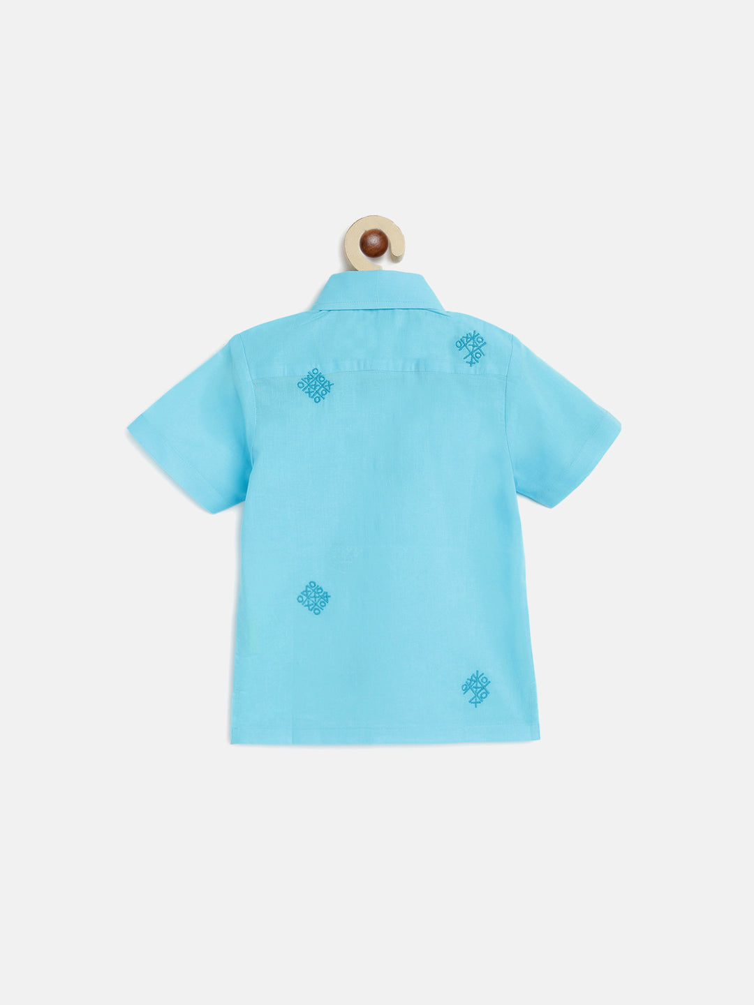 Boys will be obsessed with this light blue cotton shirt featuring a lovable Tic-Tac-Toe doodle embroidery.