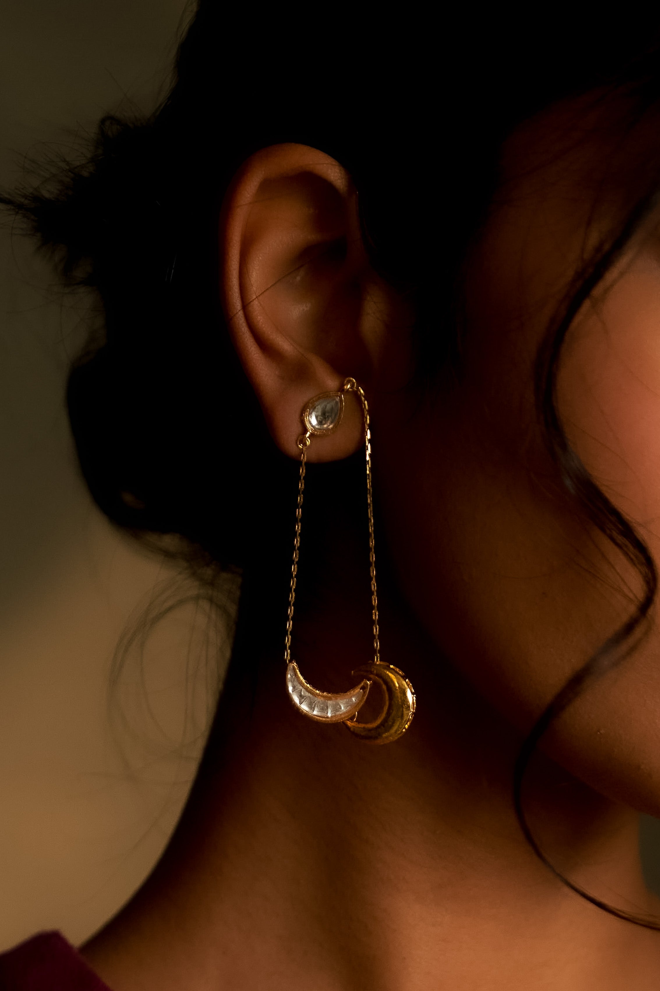 This earring features a sculpted rose-shaped stud from which a single, graceful leaf dangles. A harmonious blend of floral allure and nature-inspired elegance, it makes a striking statement while adding refined sophistication to any ensemble.