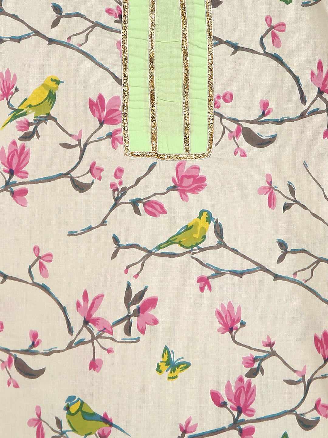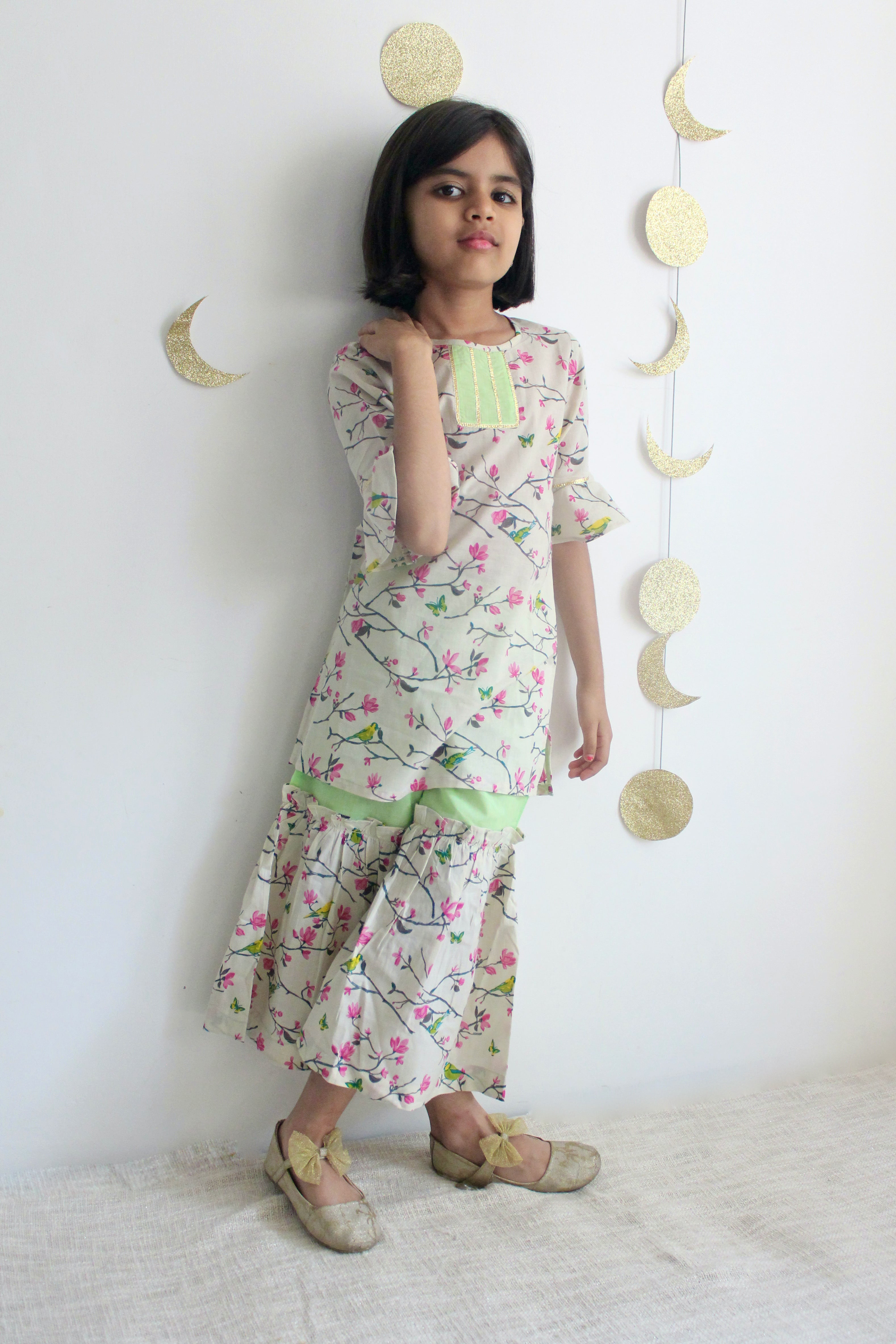 Cream Bird Block Print Sharara
