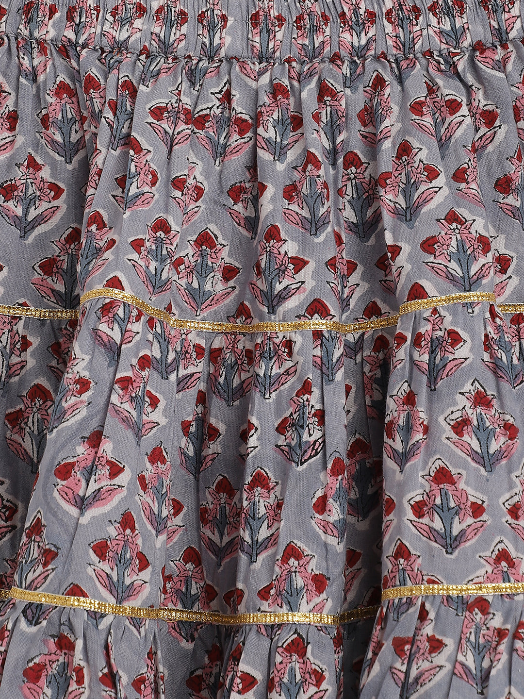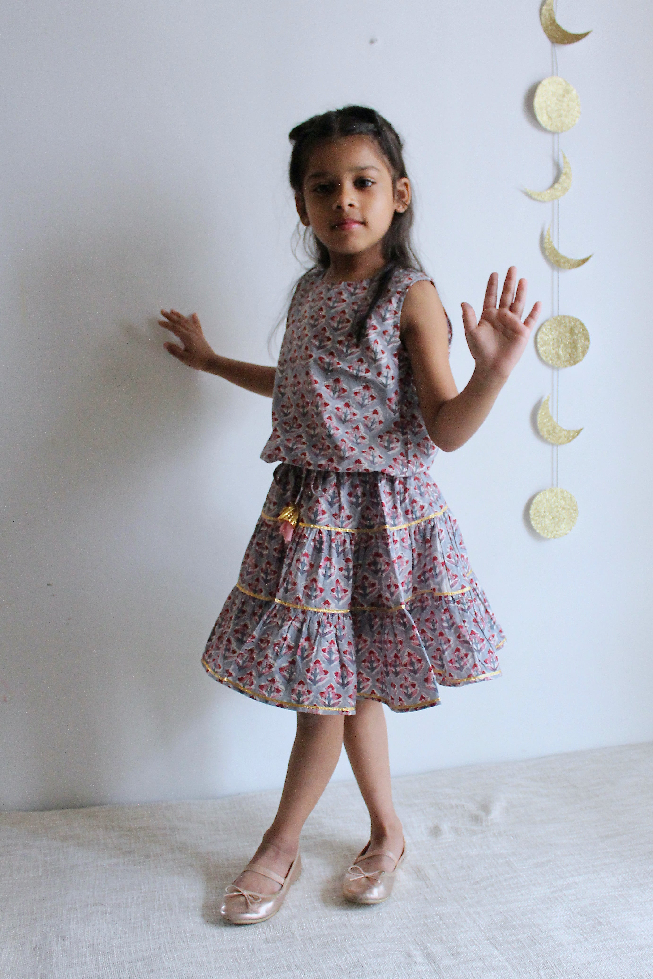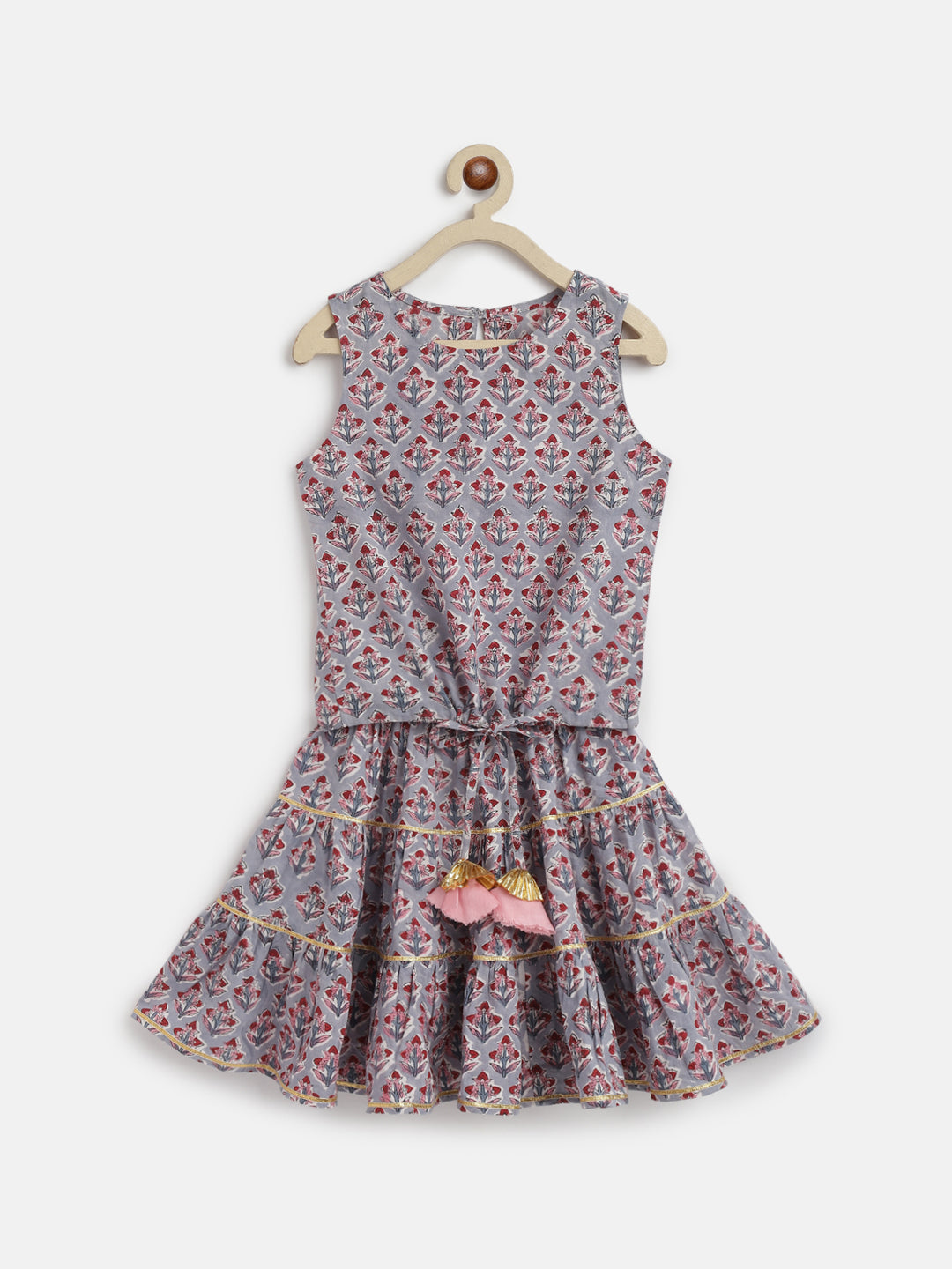 Girls' Cotton Block Print Tie-Up Lehenga Set
