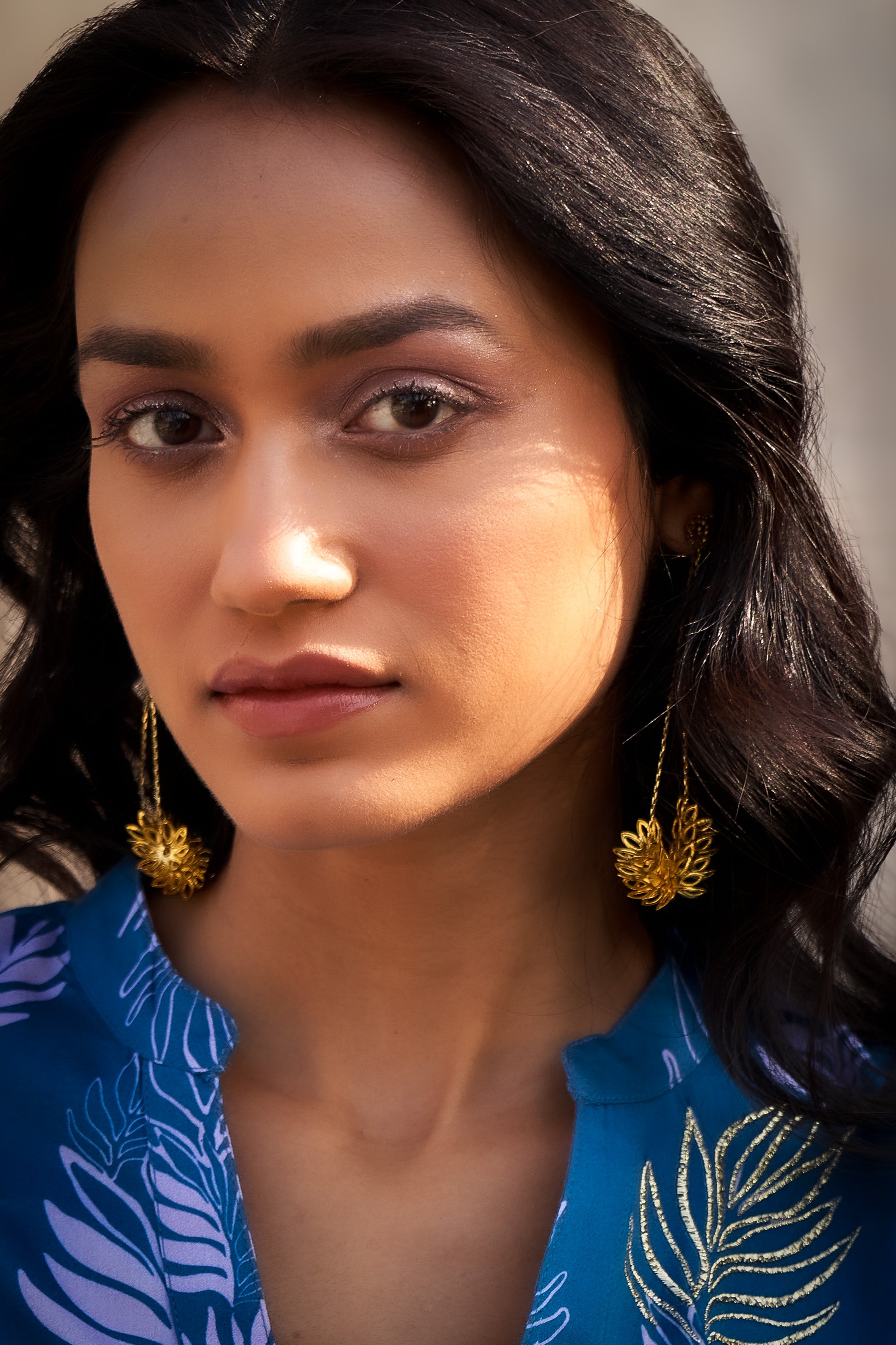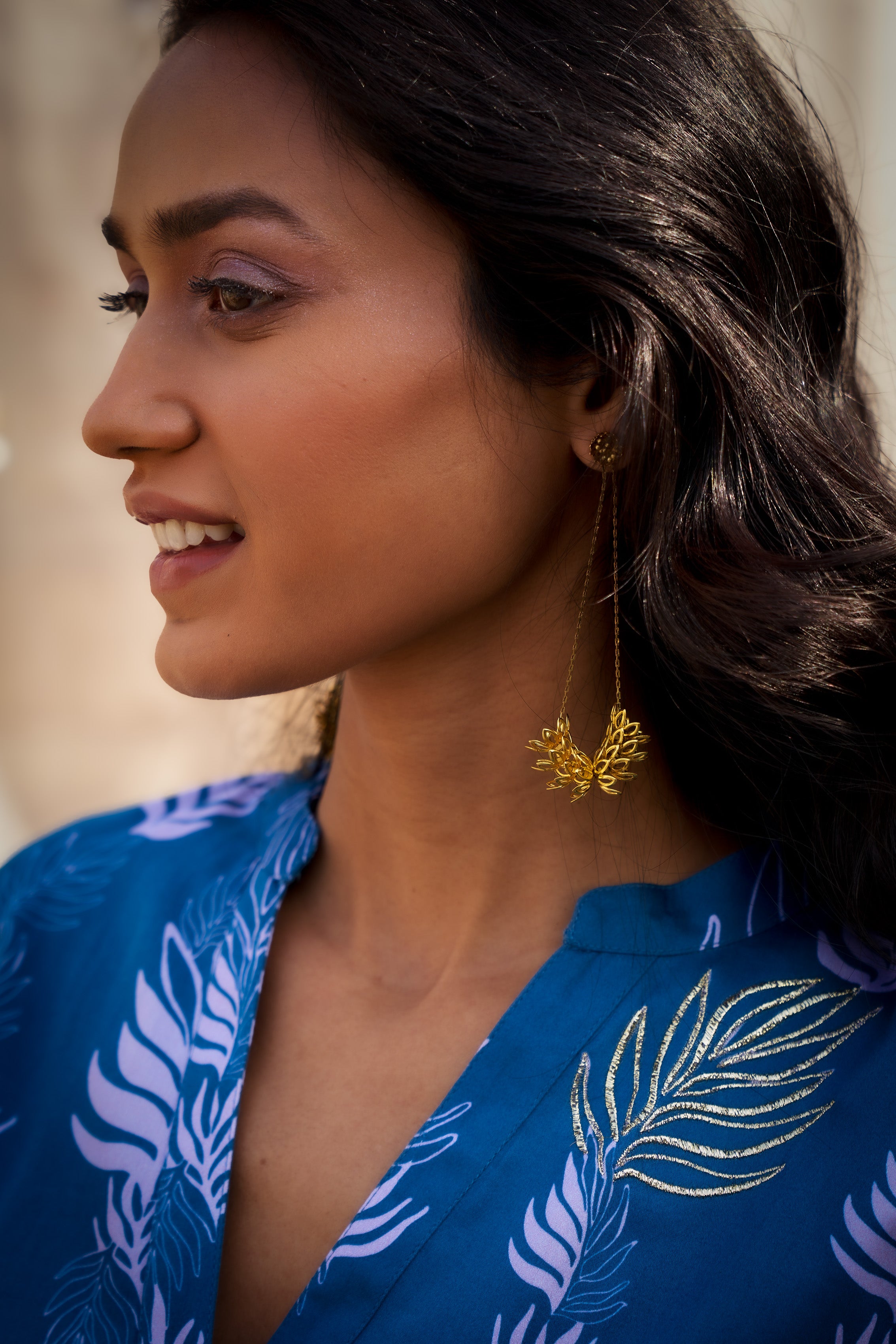 Earring with flower motifs stacked gently atop one another, forming an elegant dangling floral loop. Light, nature-inspired, and perfect for adding a soft statement to your look.