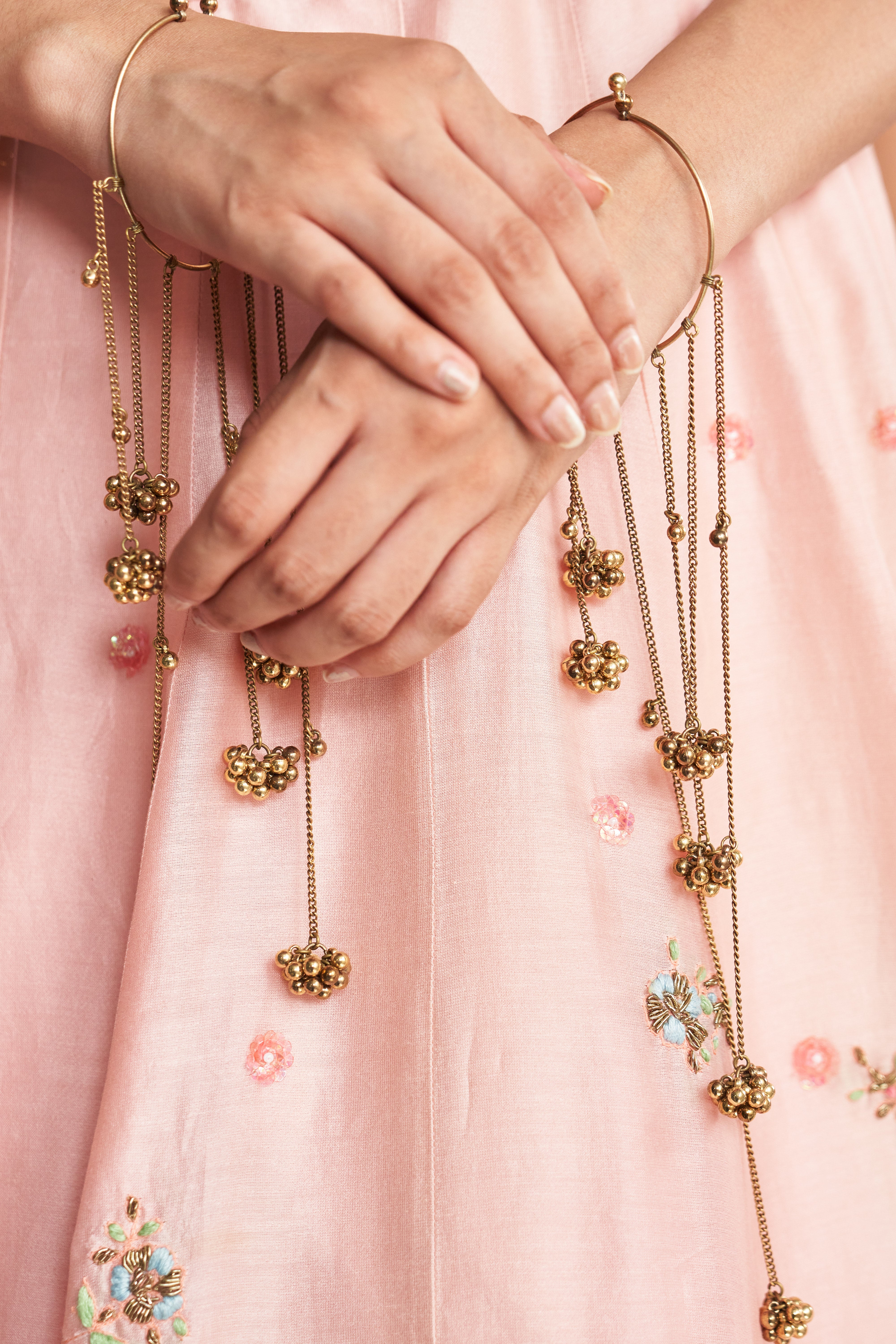 Unique Kaleera with Ghughroos – a must-own piece of jewelry that blends traditional charm with contemporary elegance. Each kaleera is intricately designed and adorned with delicate Ghunghroo, creating a melodious jingle with every movement. Perfect for weddings and festive occasions, this stunning accessory adds a touch of cultural heritage and sophistication to any ensemble.