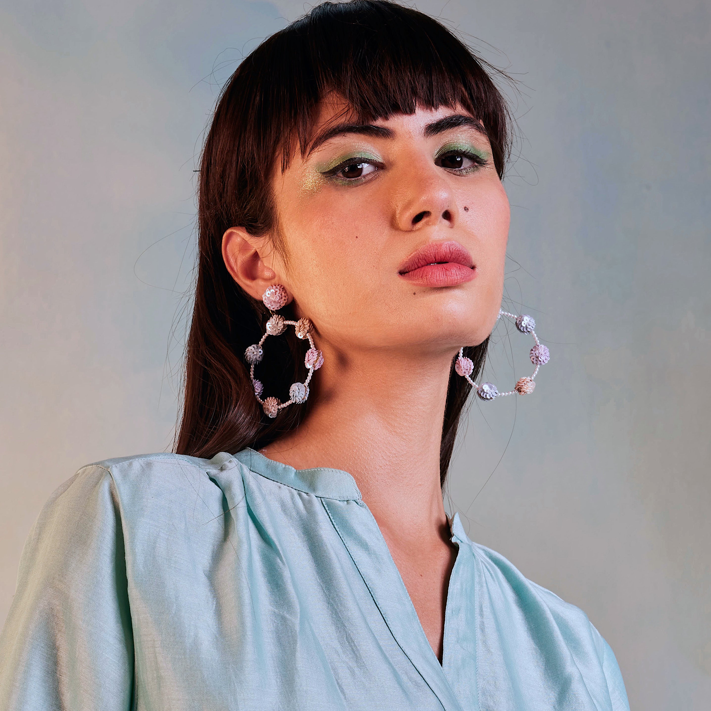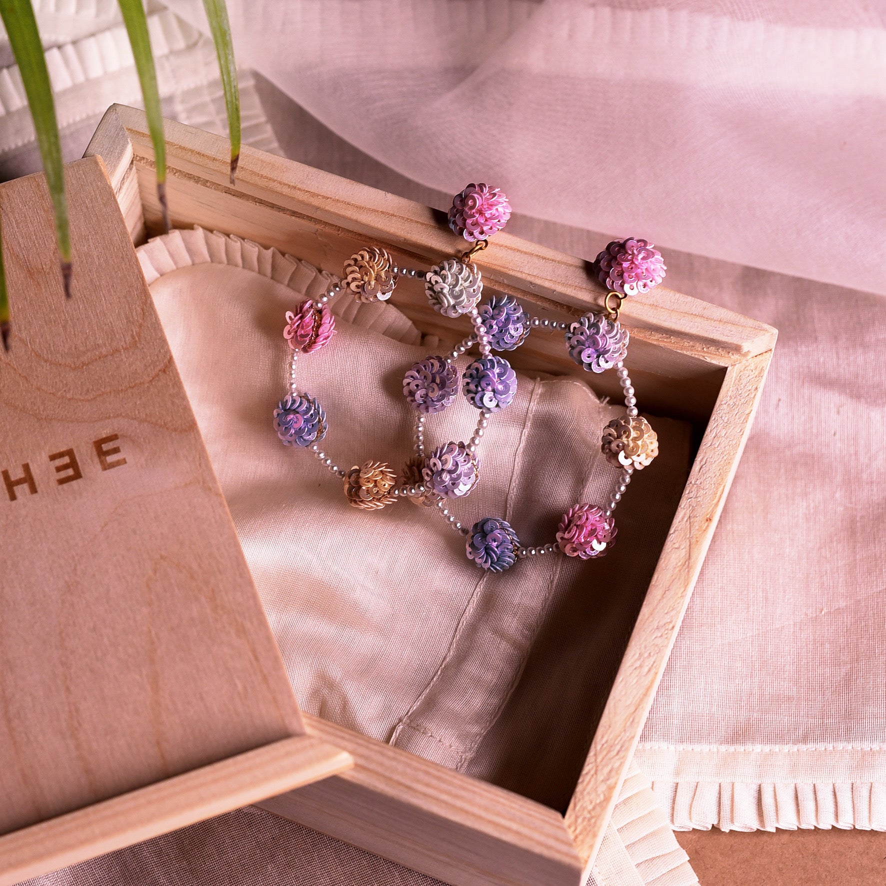 Unique hand embroidered earrings with sequin work. Delicate handcrafted, light weight and exquisite that will add to your collection of ear rings.