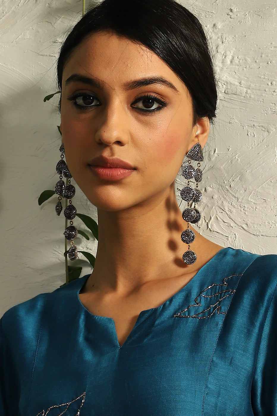 The Twilight Drop Earrings by Charkhee stand as a distinctive statement of artistry and style. The unique hand-embroidered design, featuring dabka and nakshi work, sets these danglers apart, adding a touch of allure and sophistication to your appearance. With attention to detail, each earring becomes a collectible piece, reflecting the craftsmanship Charkhee.