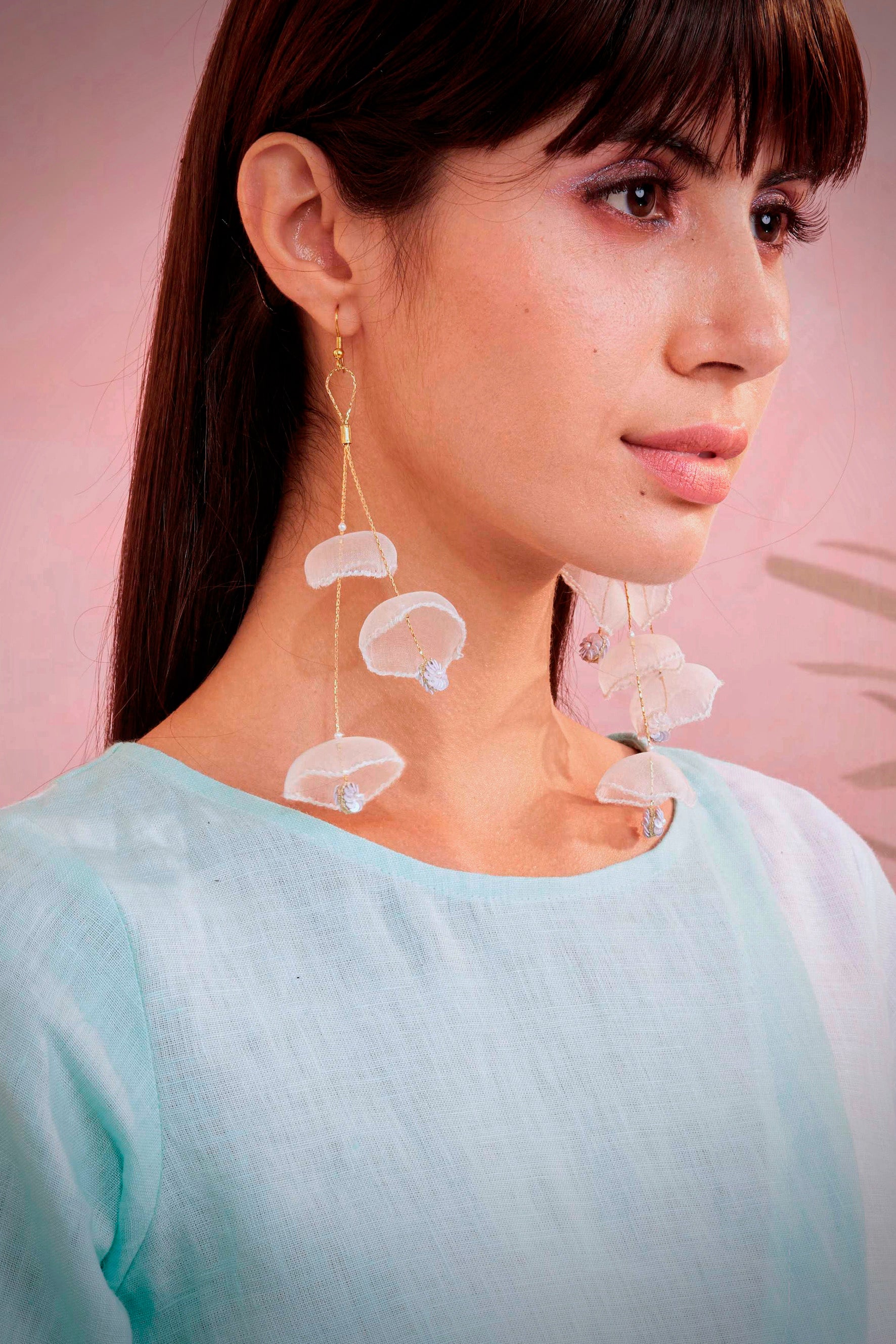 Unique hand embroidered earrings with sequin work. Delicate handcrafted, light weight and exquisite that will add to your collection of ear rings.
