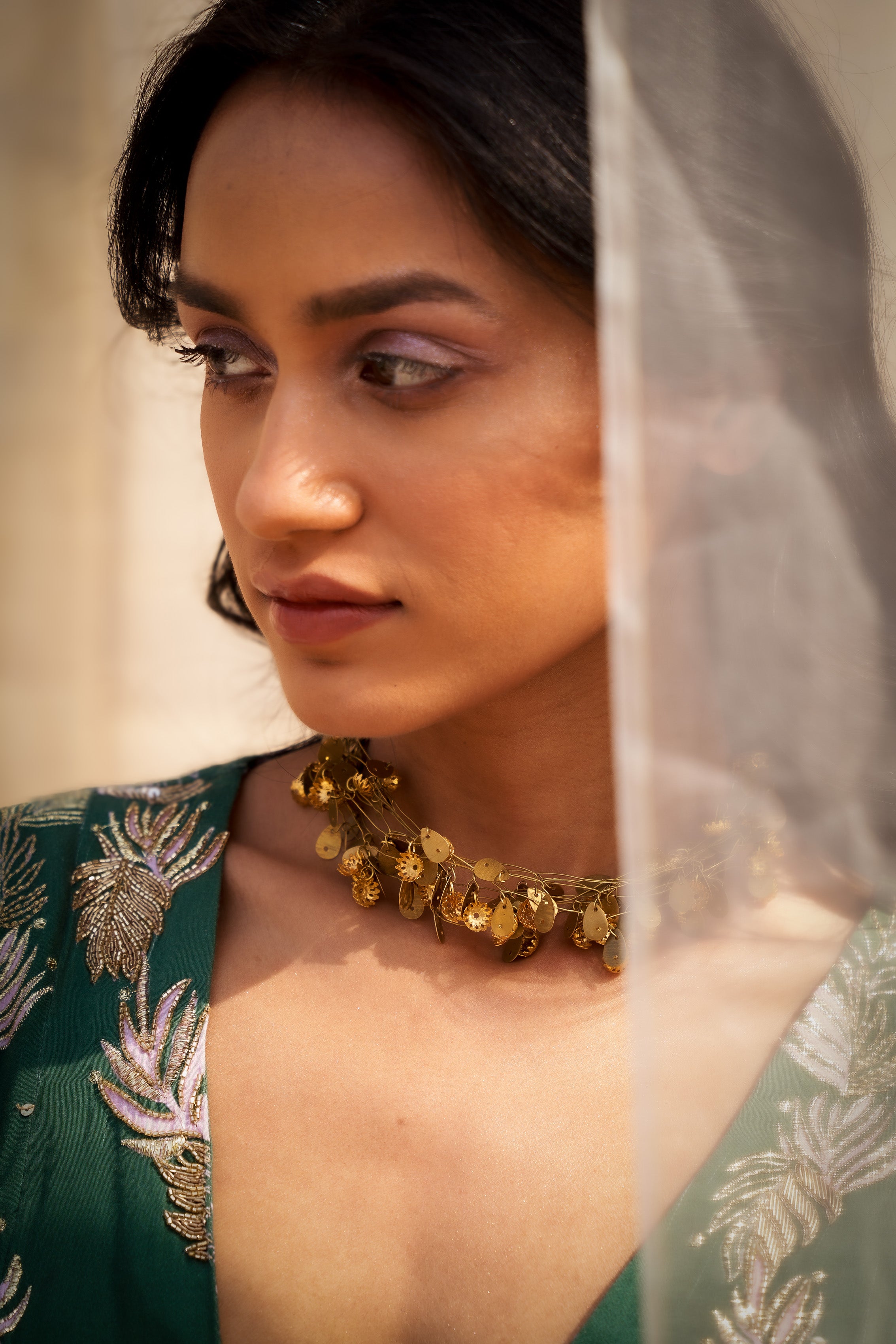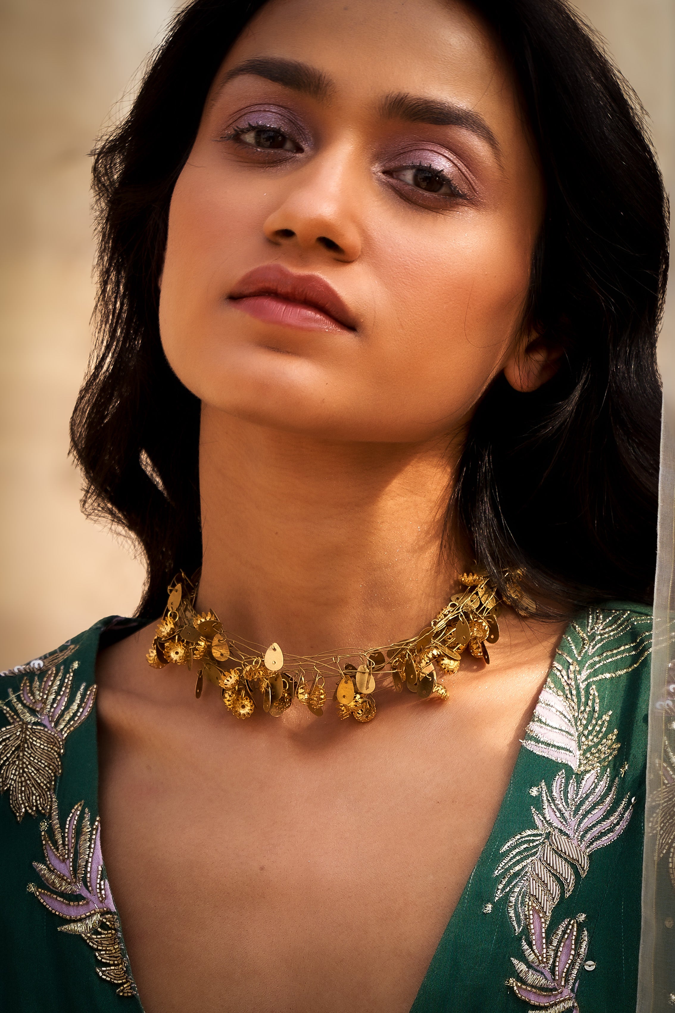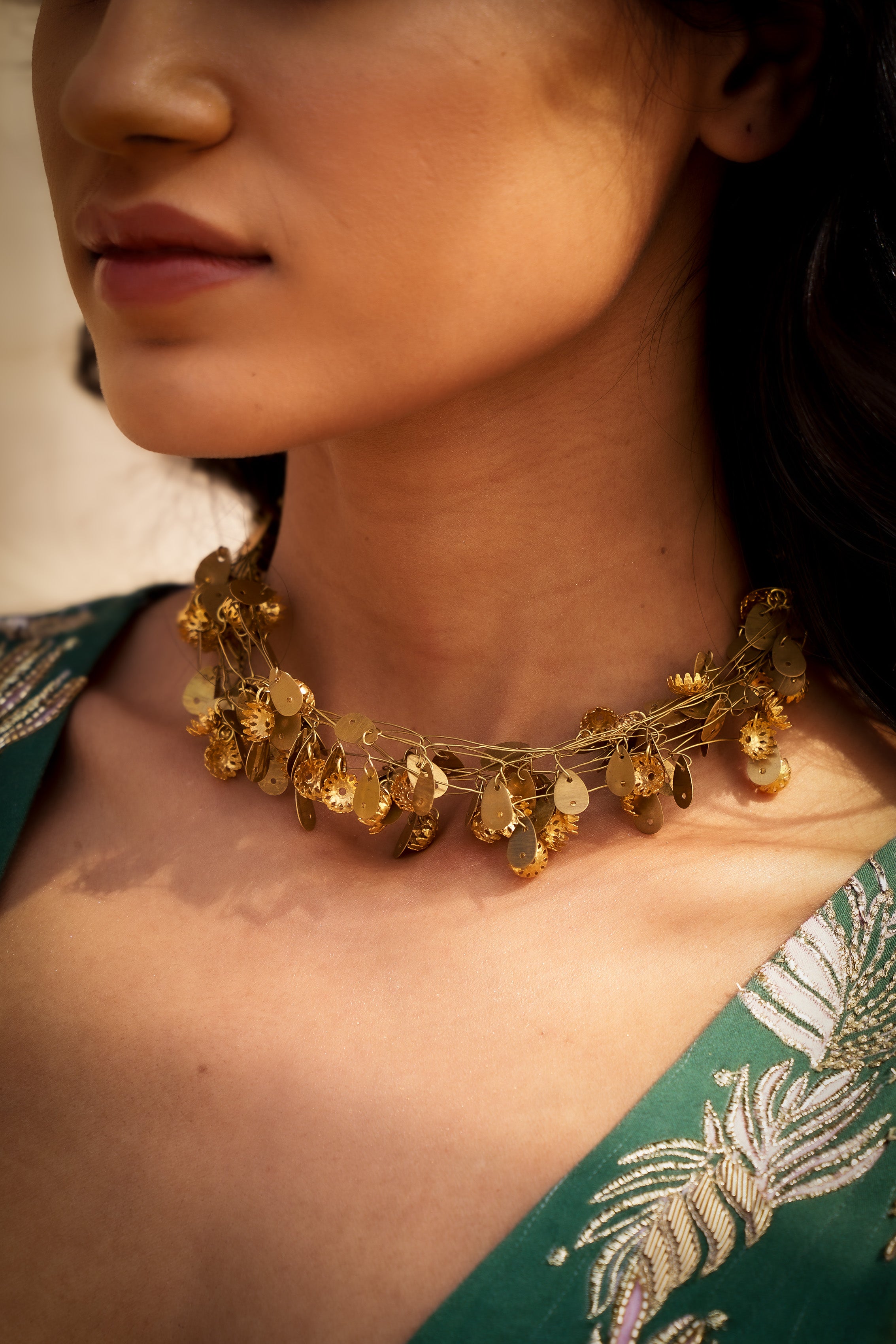 Delicate yet bold,Wild Tangle is a neck piece inspired by the raw nature. Intertwined with leaves and floral motifs, it evokes the charm of a wild forest —where tiny twines, branches, and blossoms come together.A perfect blend of elegance and earthy spirit.The intricate intertwining captures the raw, unfiltered charm of the forest.Softly fierce and naturally graceful,
