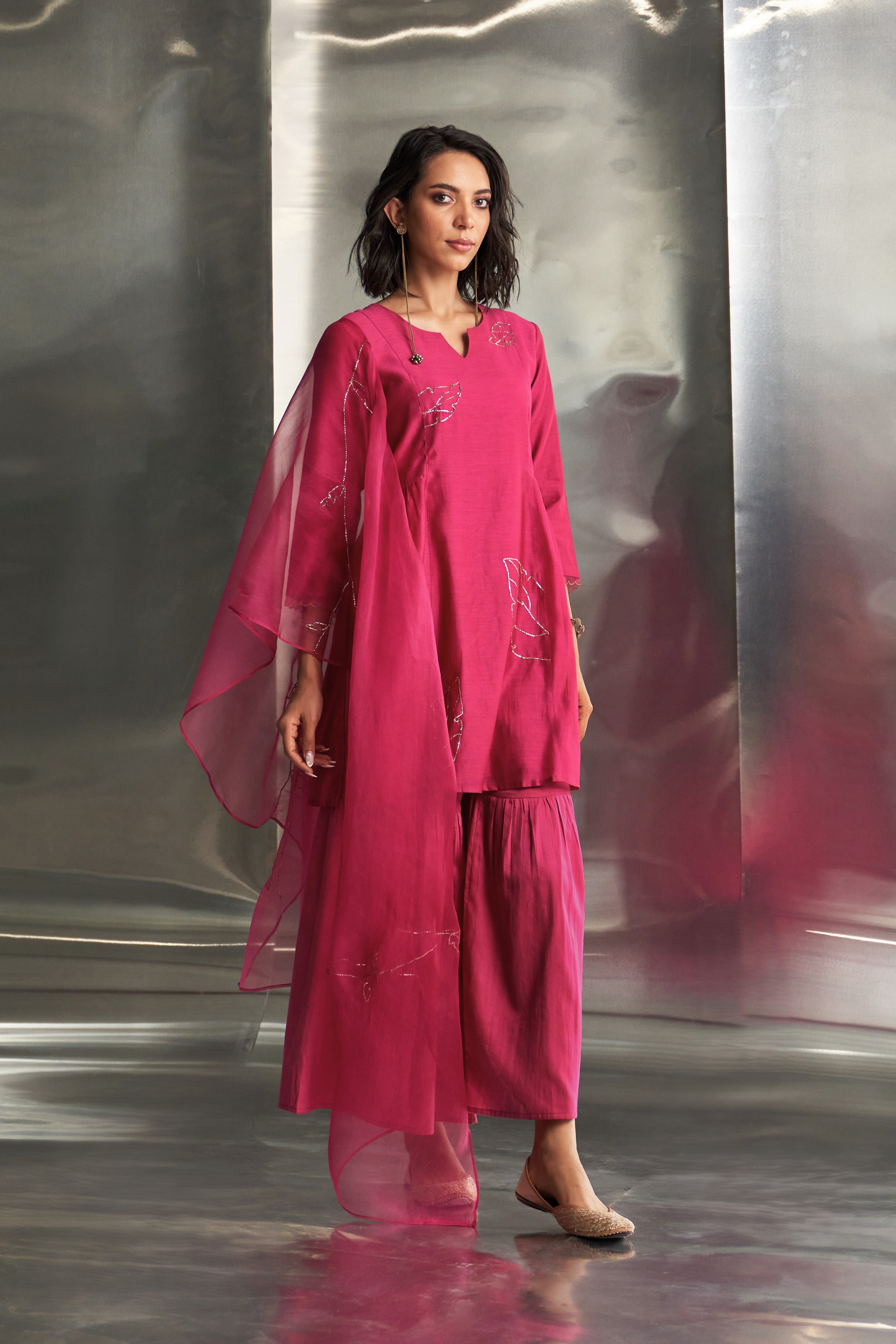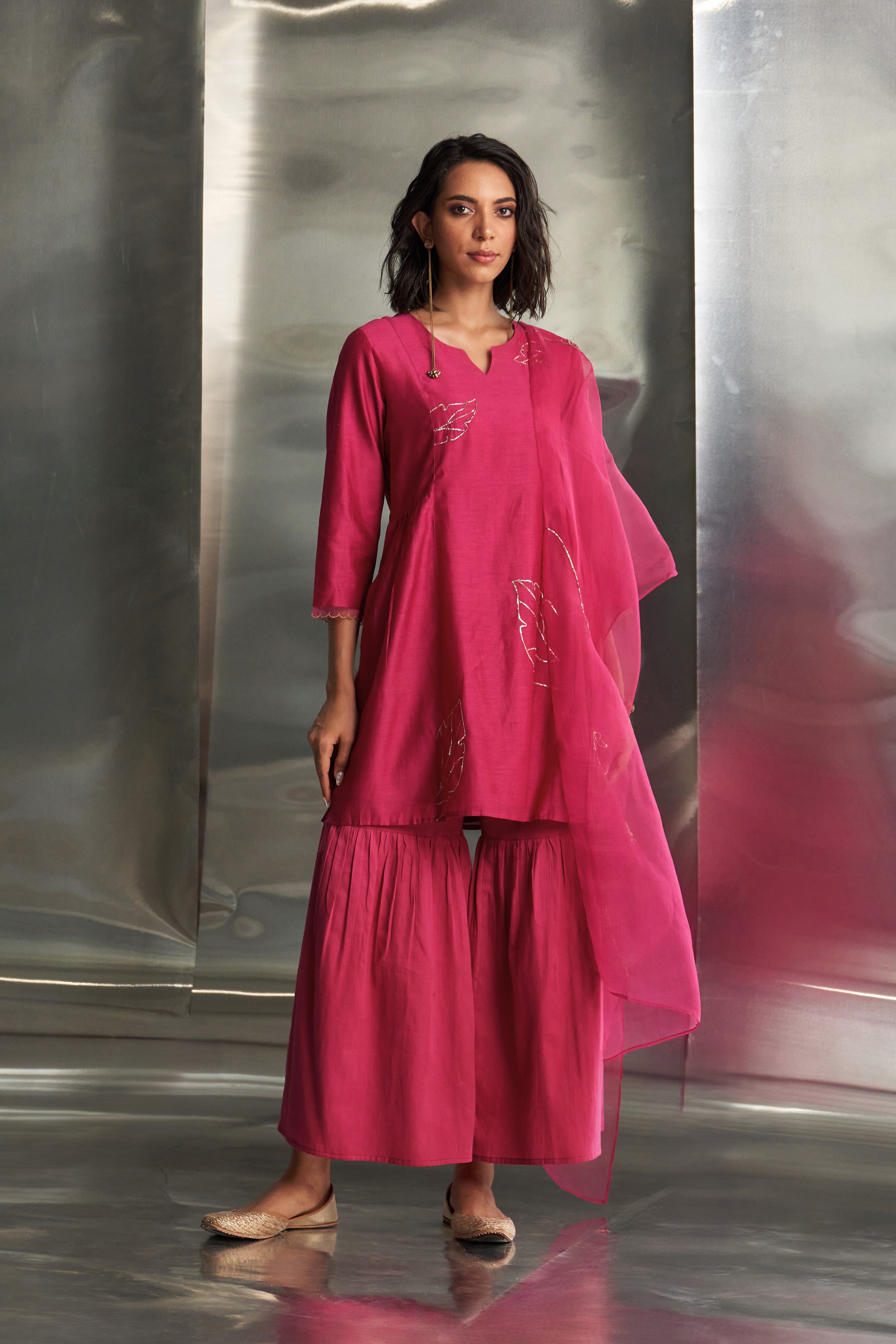 Pop Pink Chanderi Sharara Set