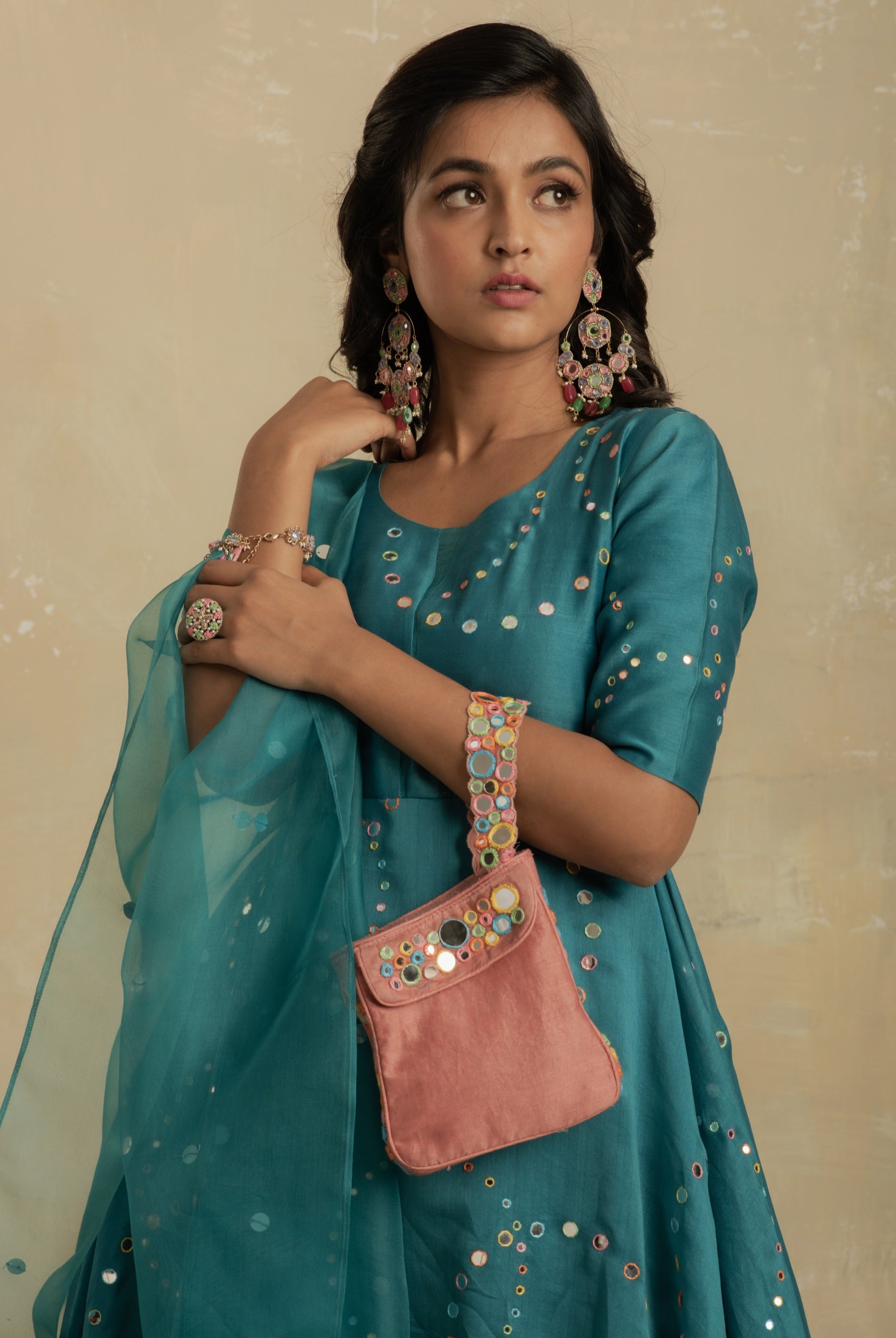 Experience the captivating allure of mirror work, dedicated to India's vibrant festivities - from lively celebrations to grand weddings. Discover our timeless collection.