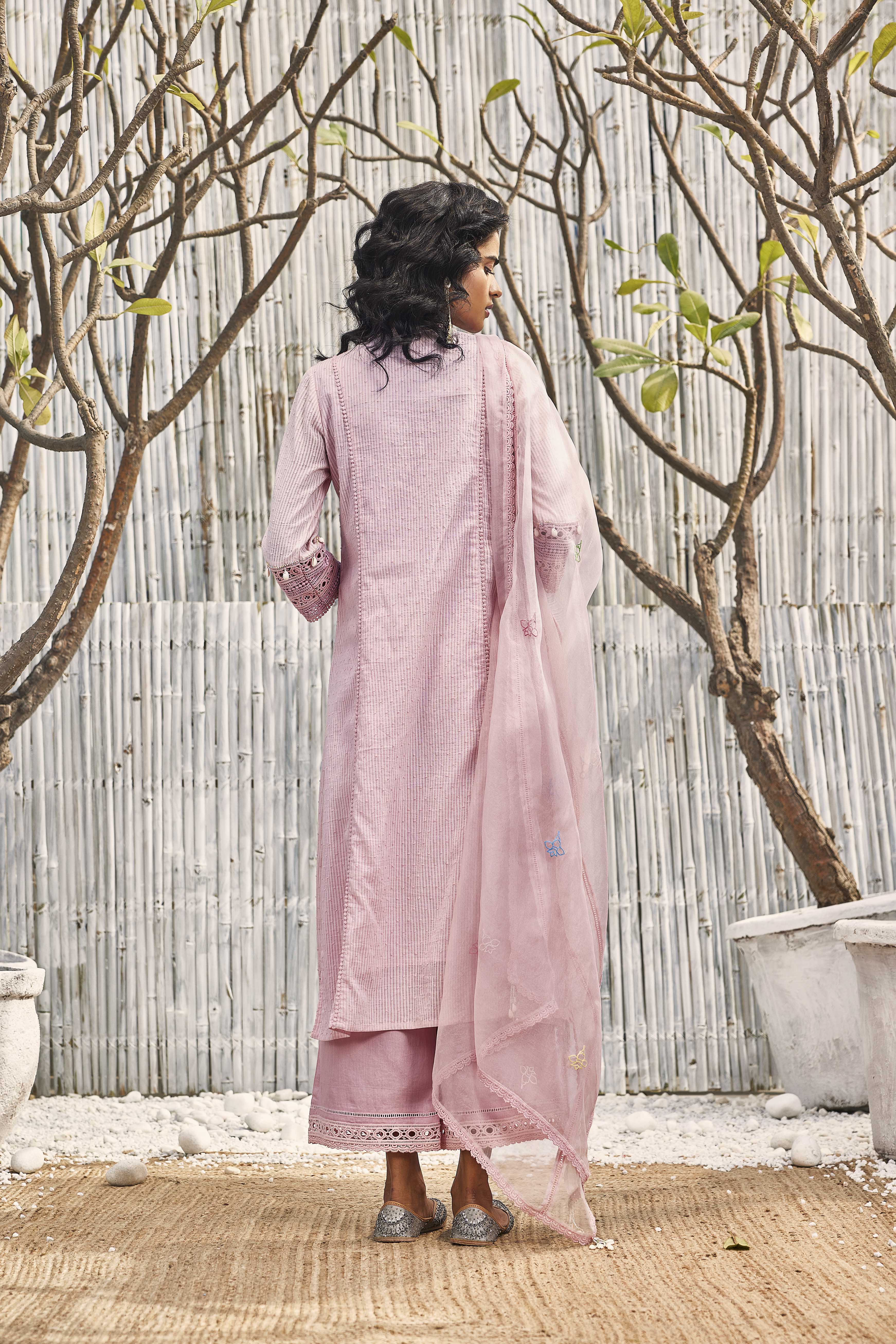 Blush Pink Lace & Bead Kurta with Palazzo - Set of 3
