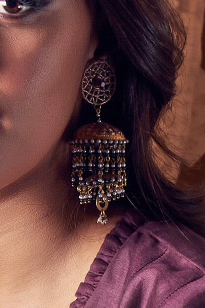 Unique handmade jhumki earrings with embroidery work. Delicate, light weight and exquisite that will add to your collection of art jewellery.