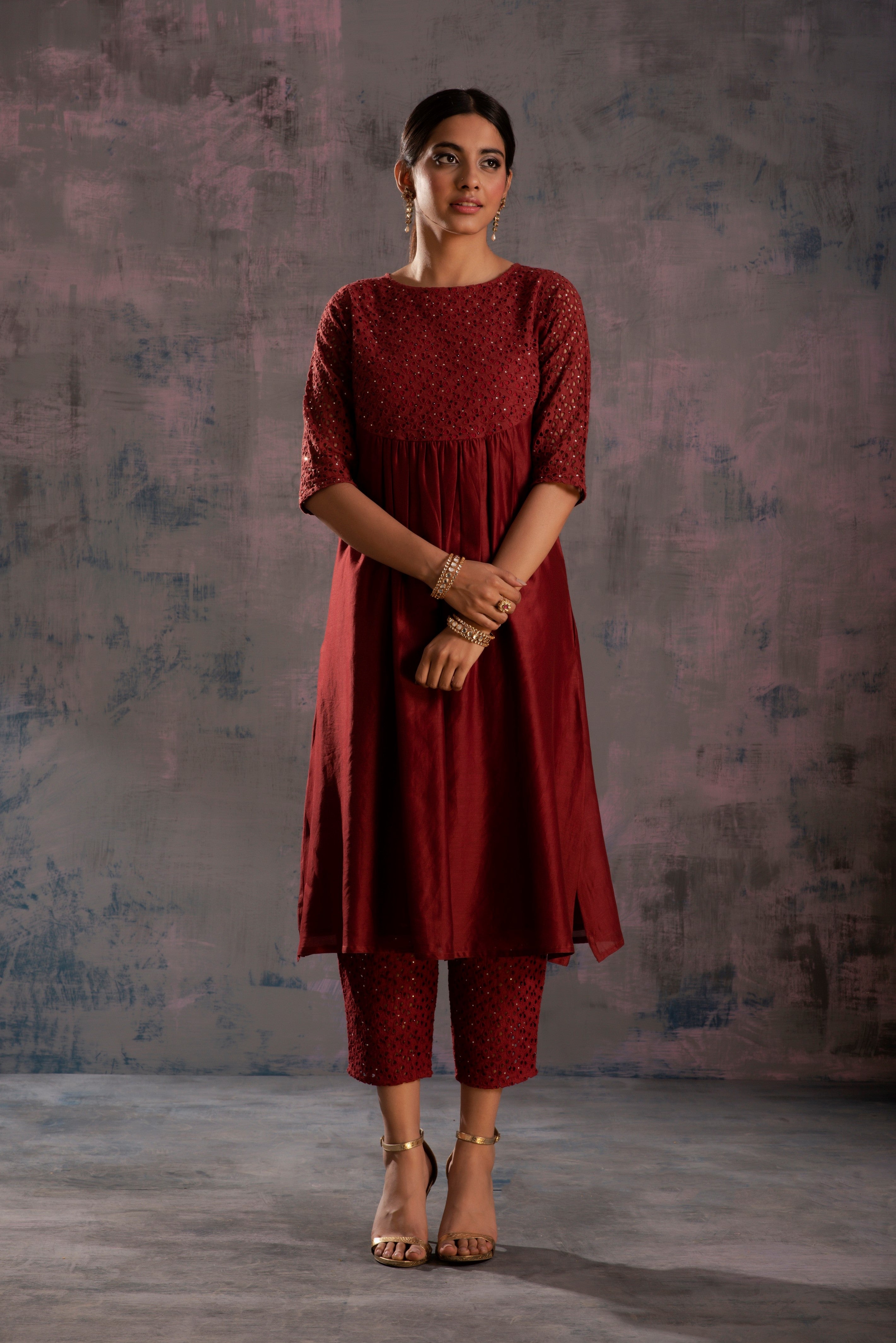 Swarovski Rust Round Yoke Kurta Set - Size L
