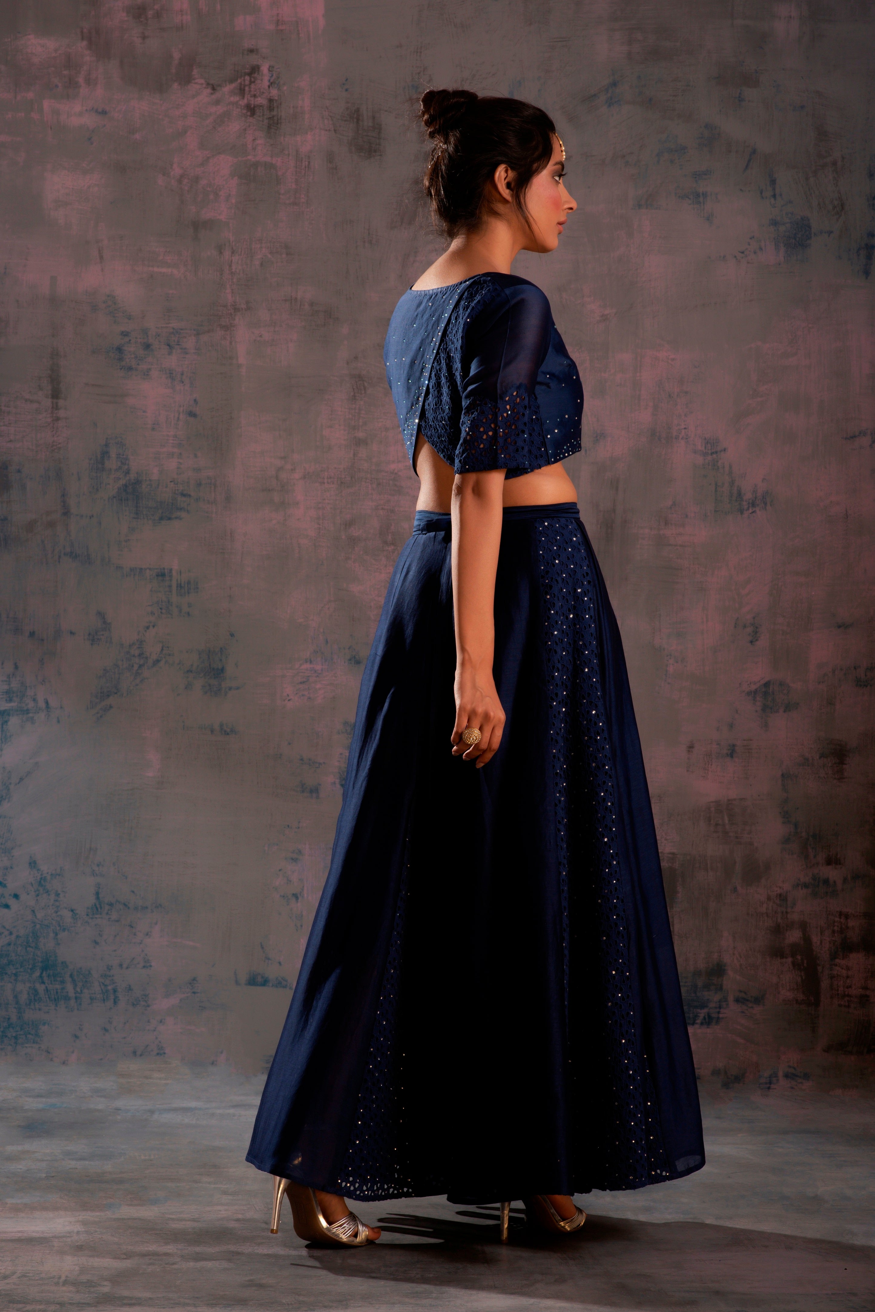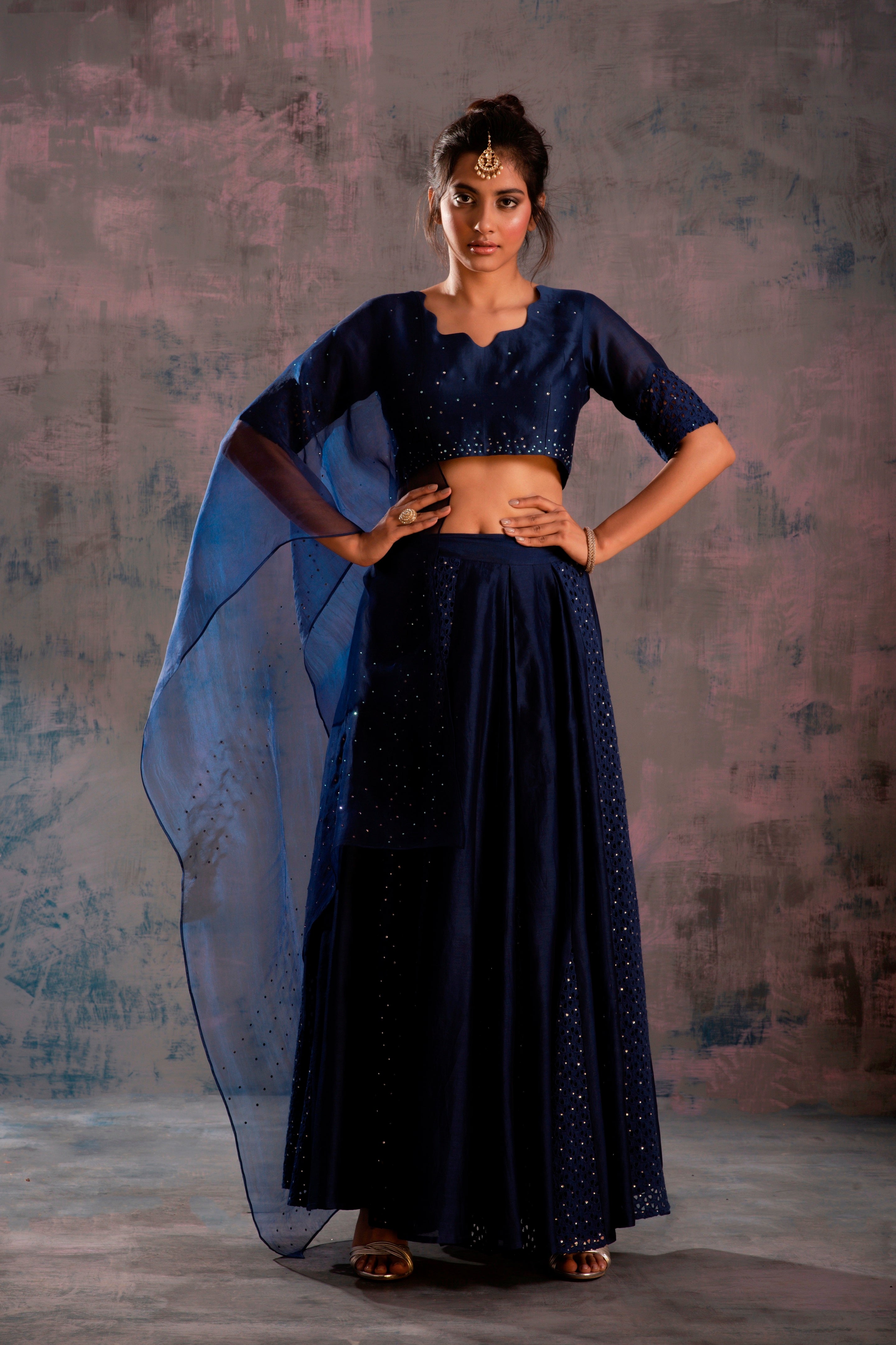 Swarovski Midnight Blue Chanderi Lehenga - Set of 3