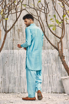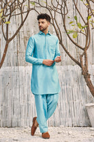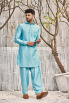 Men's Blue Chanderi Pathani with Salwar - Set of 2