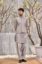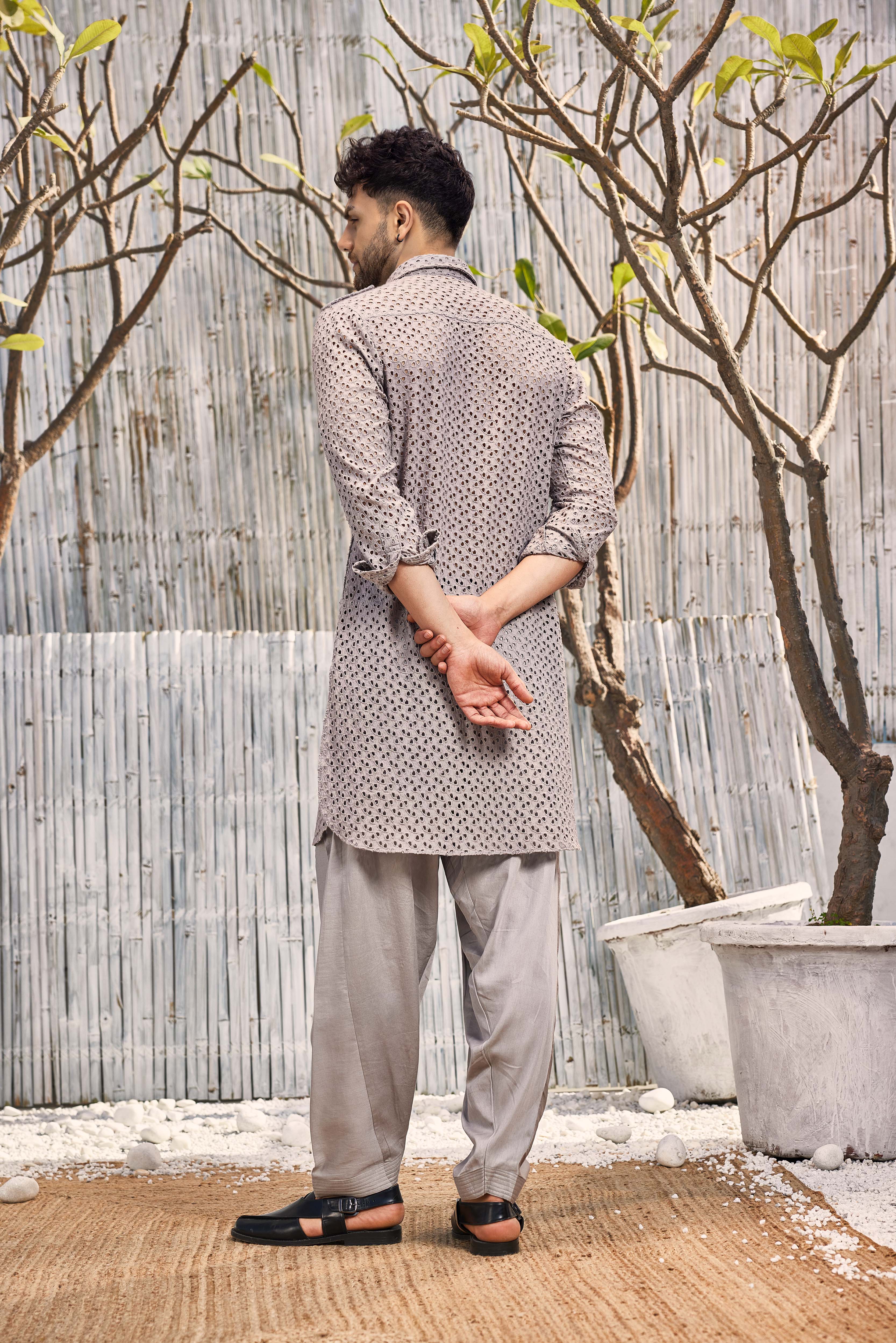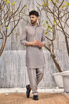 Men's Steel Grey Cutwork Pathani with Salwar - Set of 2