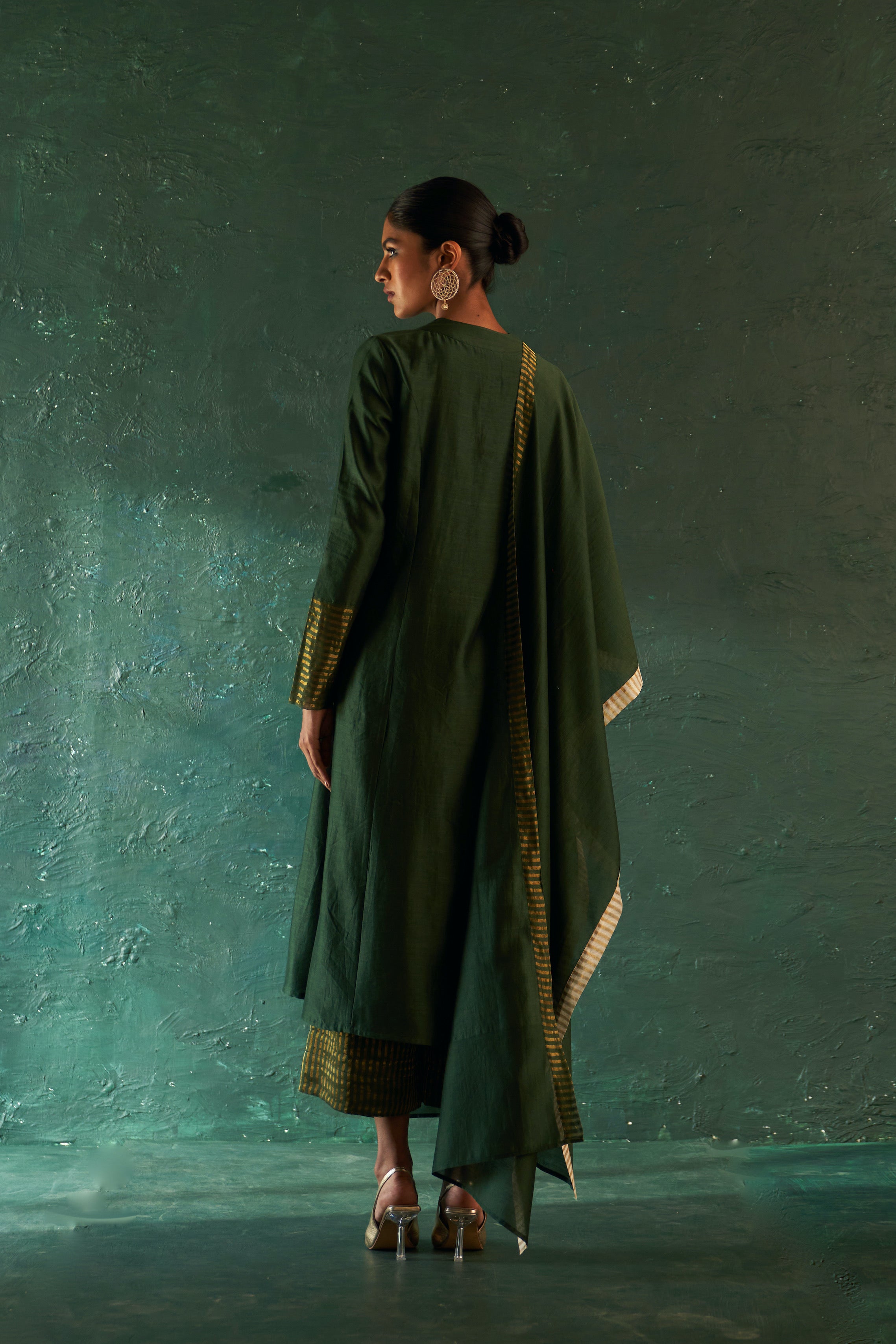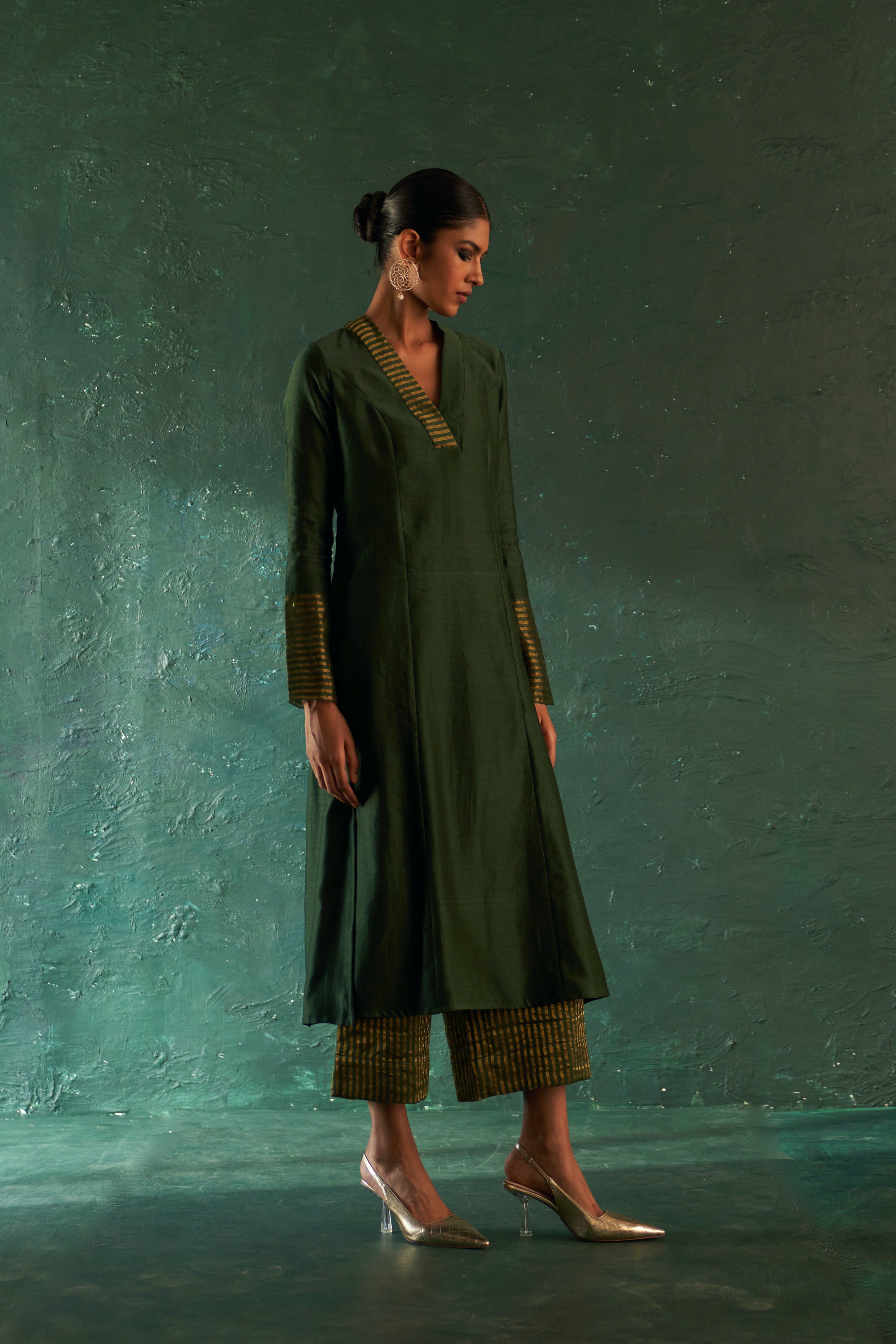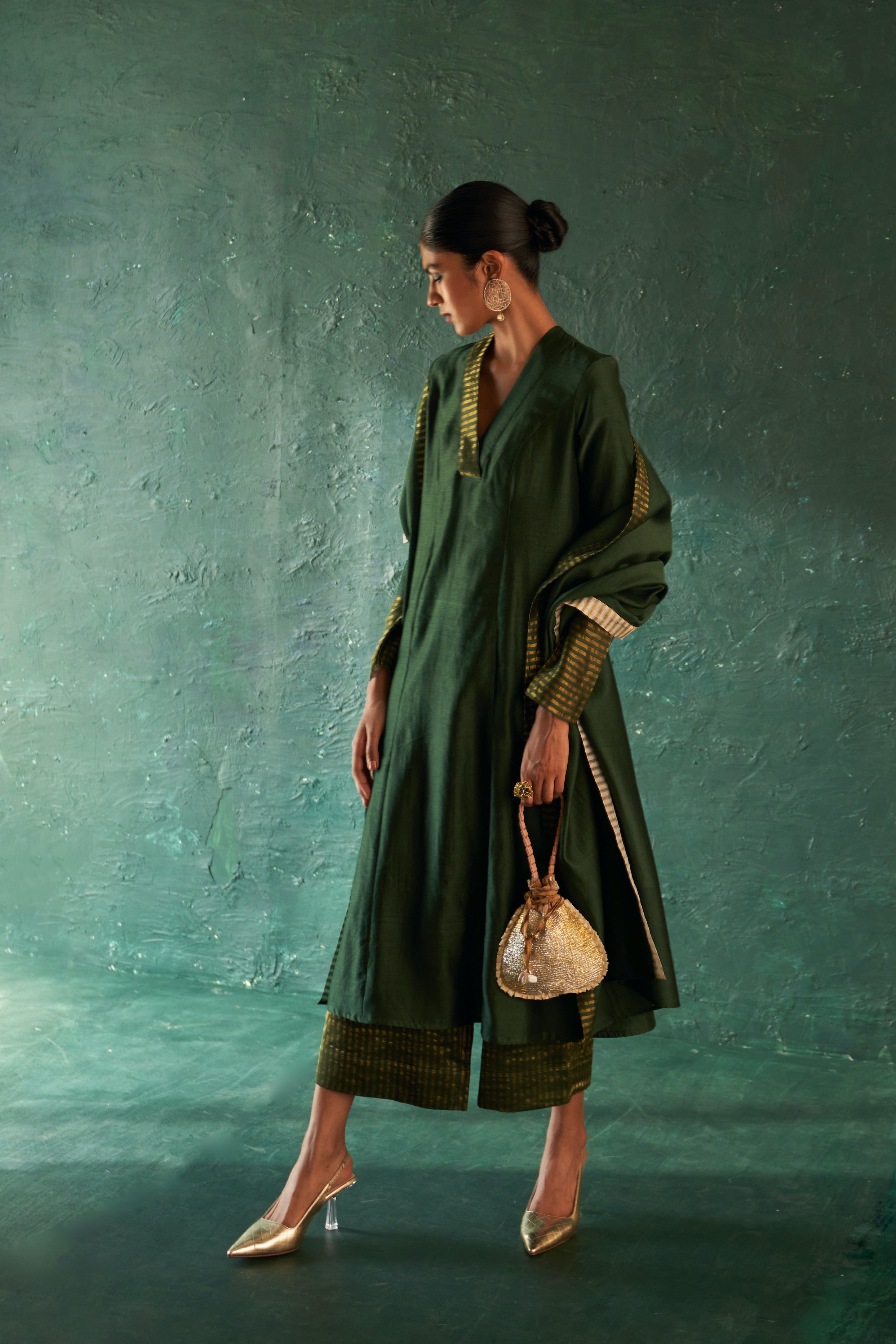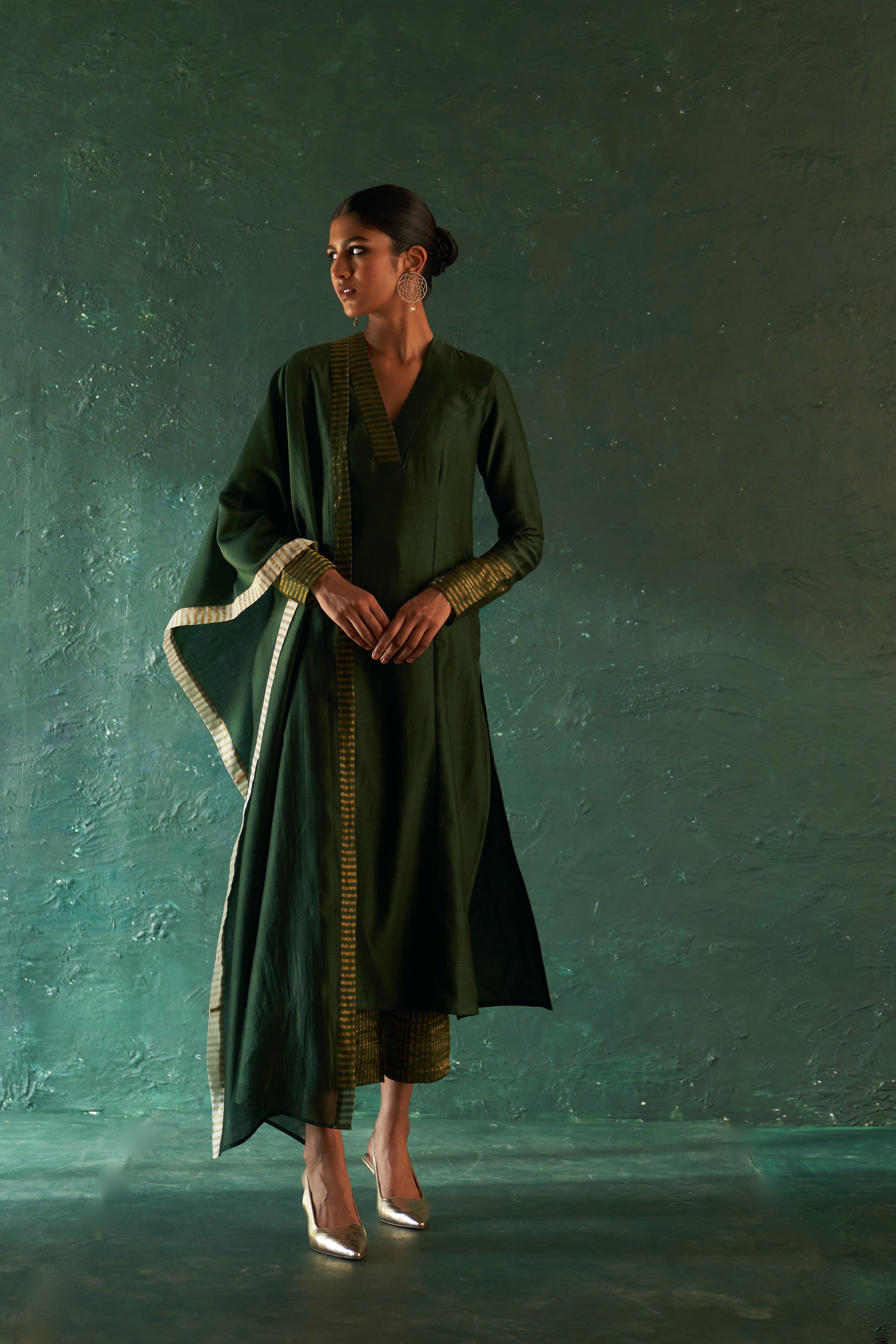 Midas Deep Green Chanderi Straight Kurta - Set of 3