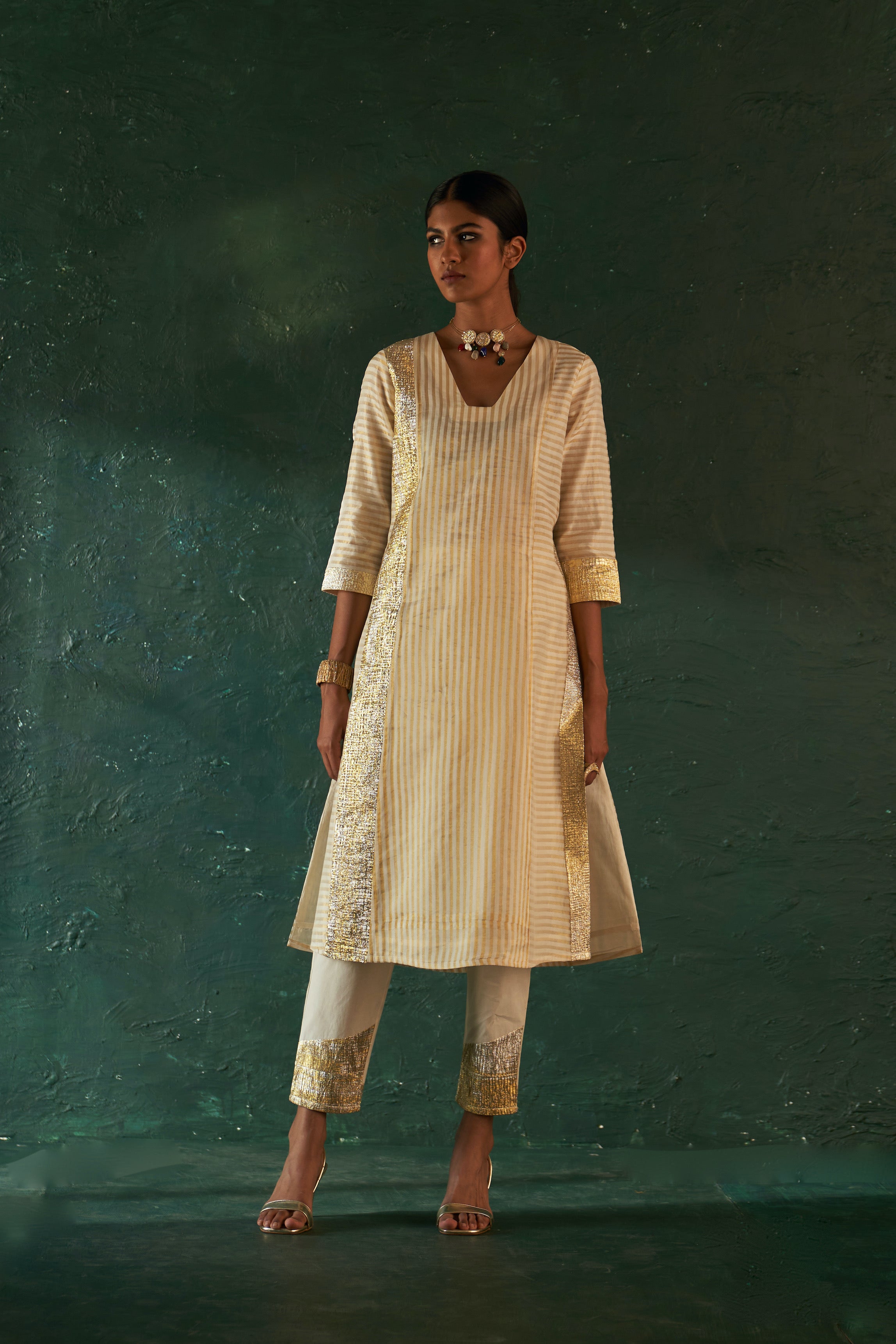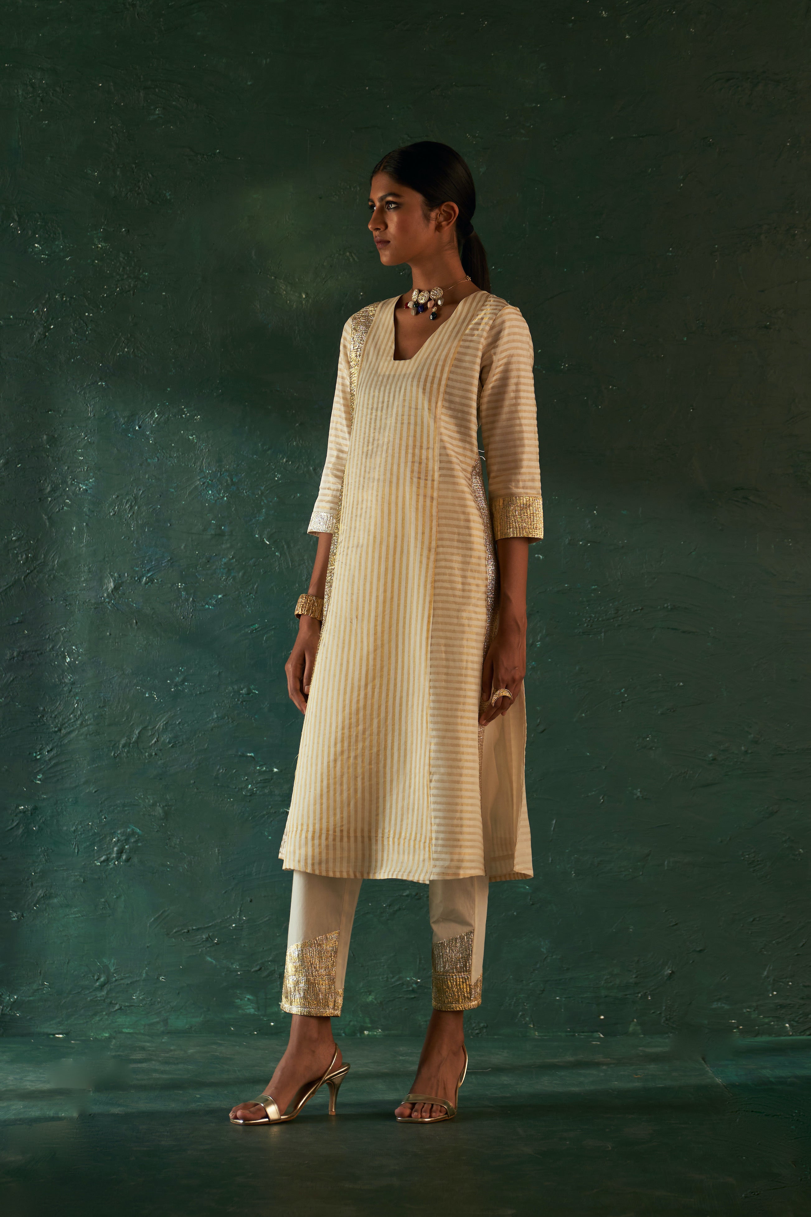 Midas Ivory Stripe Kurta - Set of 3