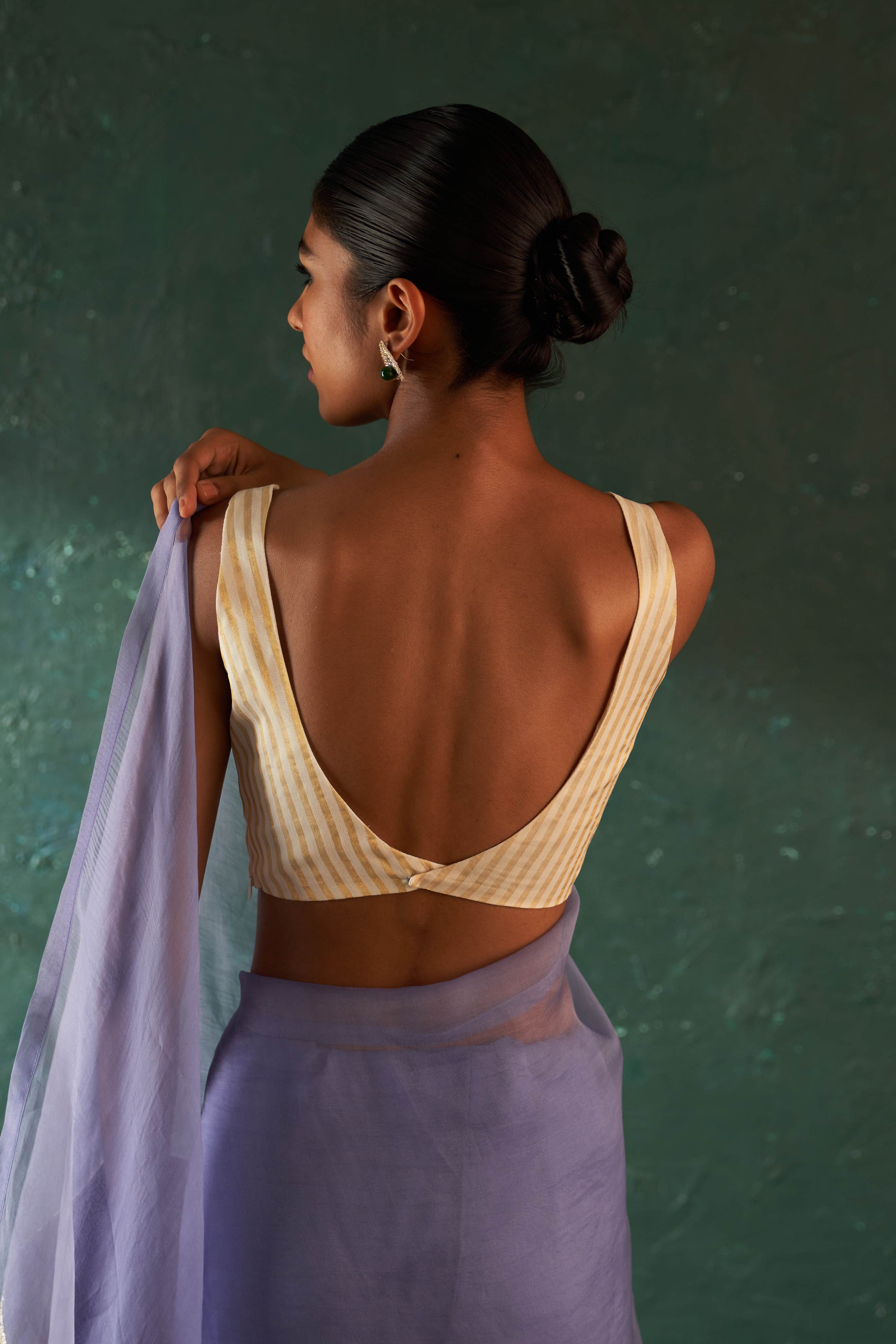 Midas Purple Saree with Sleeveless Blouse - Set of 2