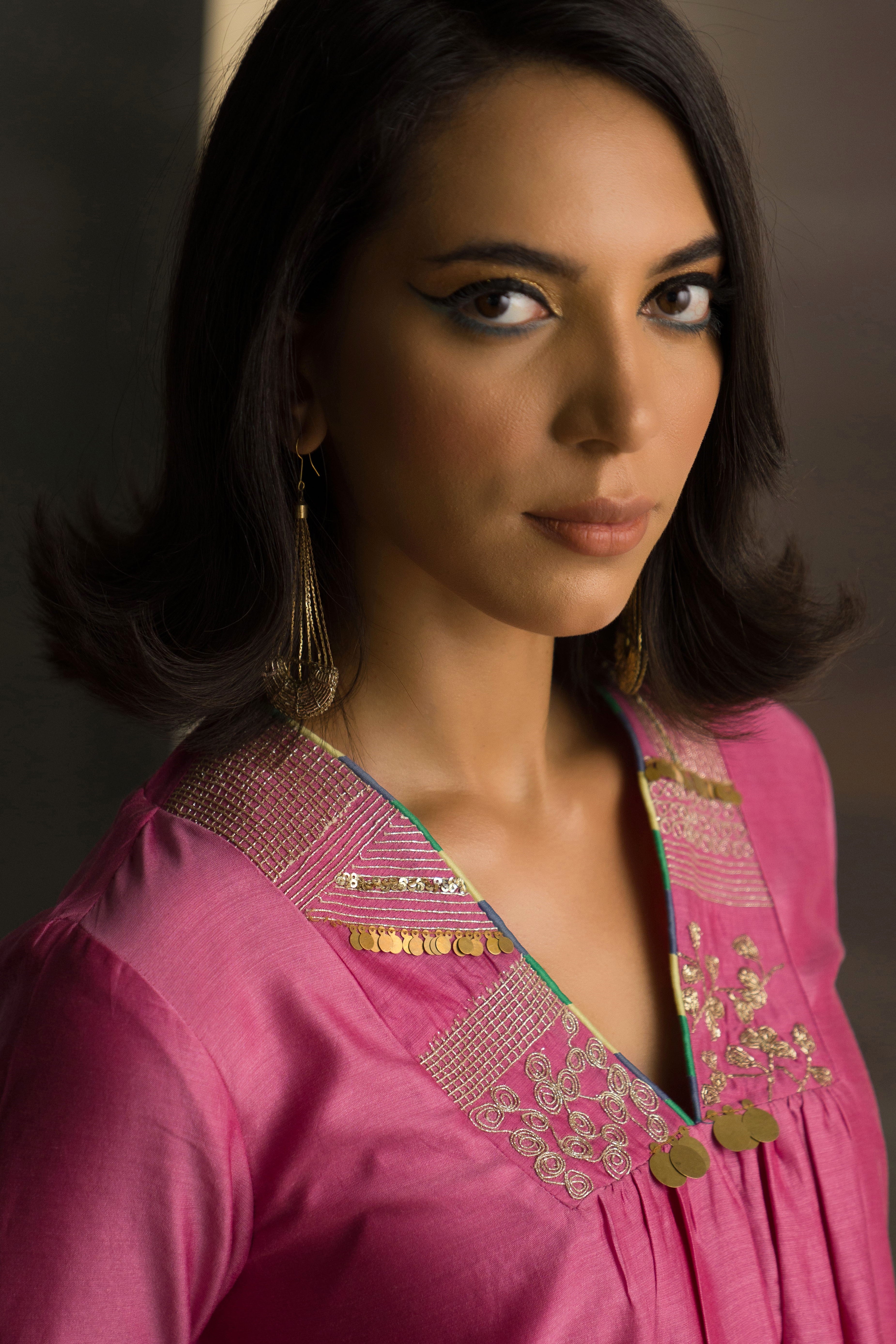Bloom Pink V-Neck Kurta Set
