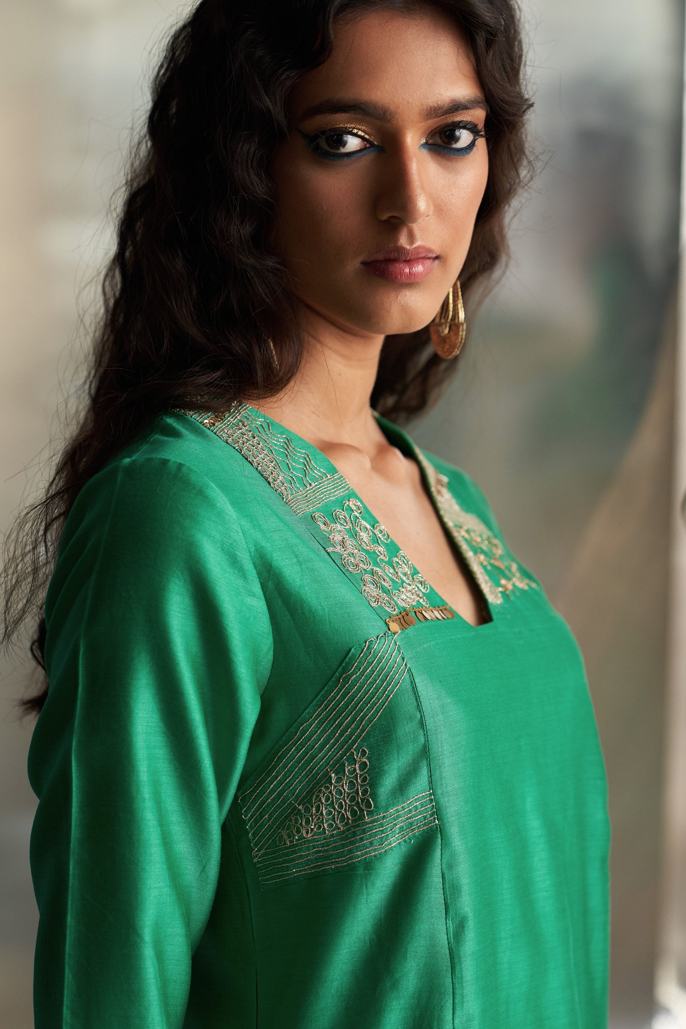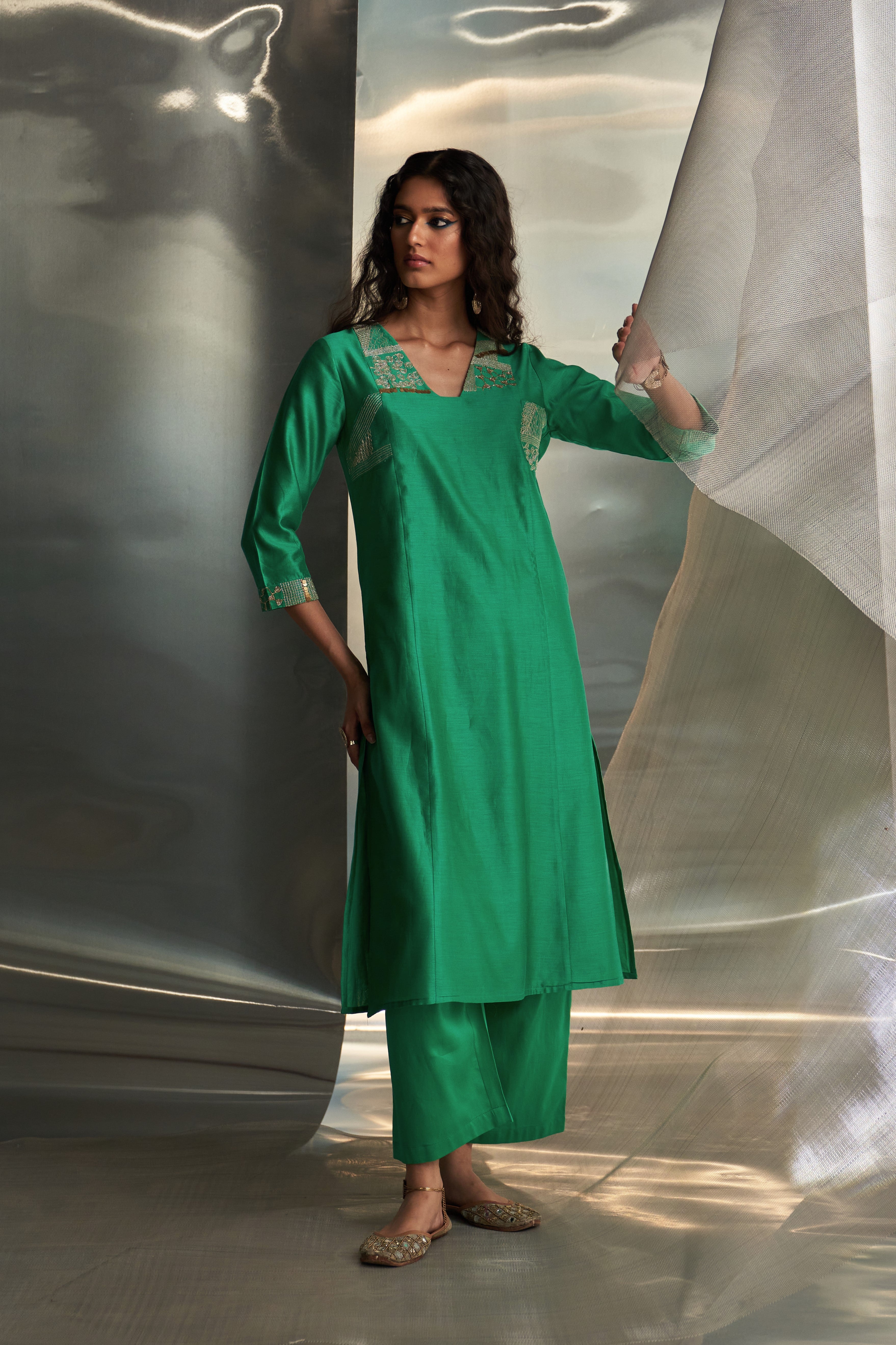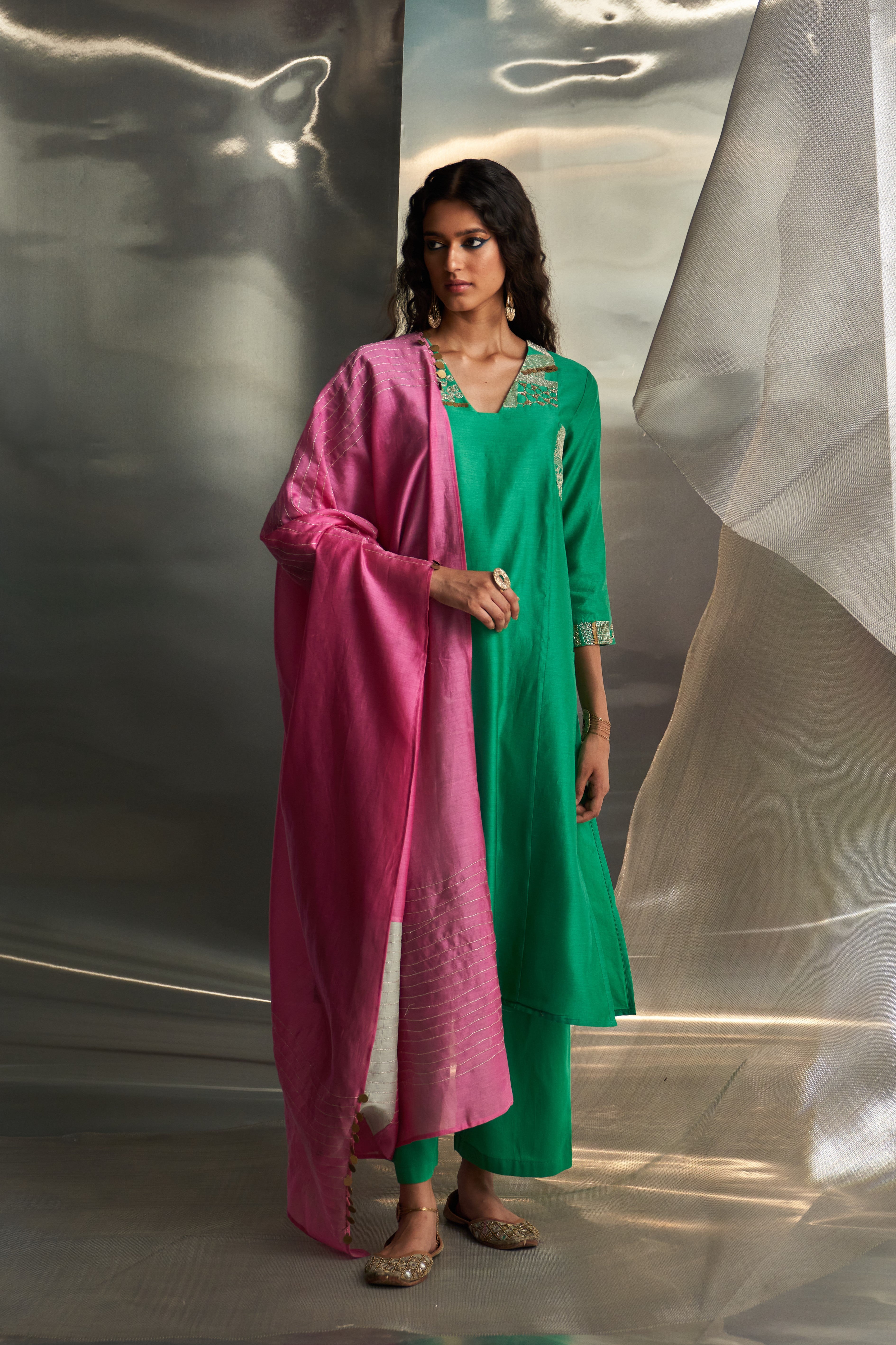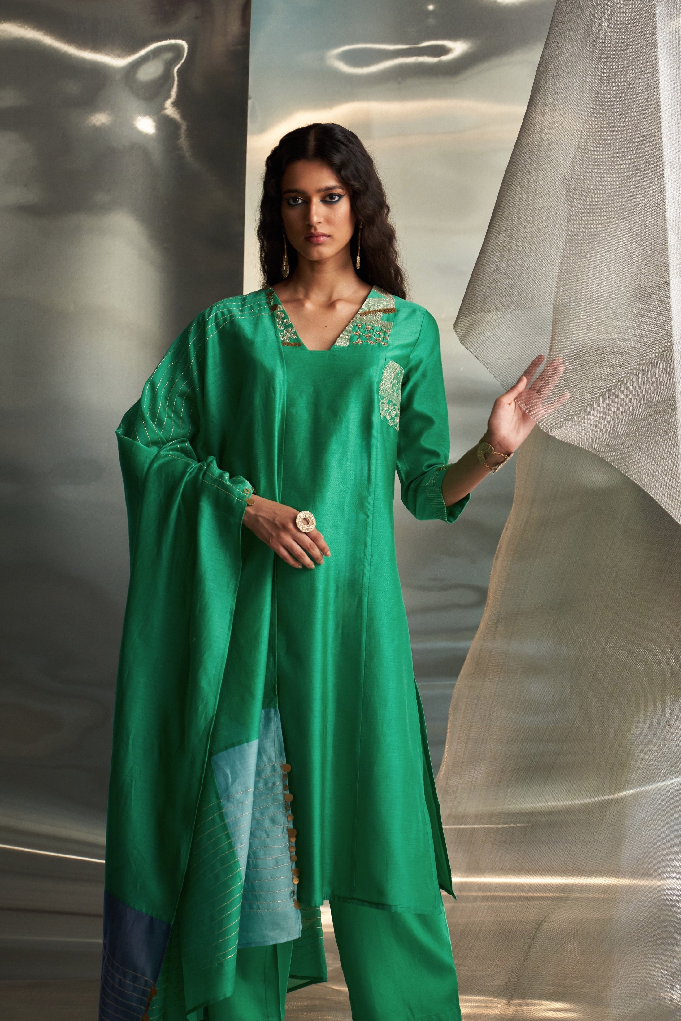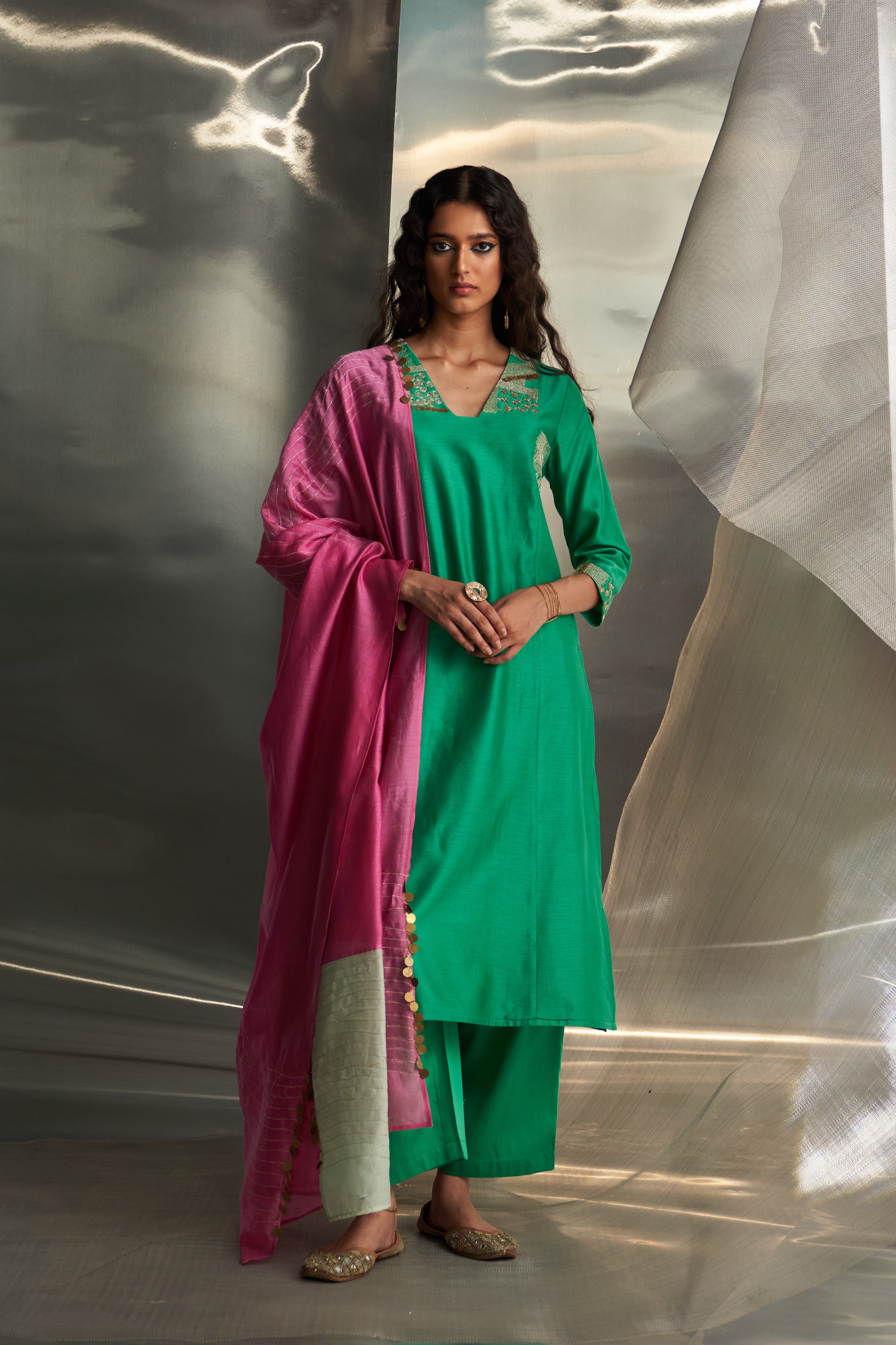 Lush Green Straight Kurta Set (2 Dupatta Options)