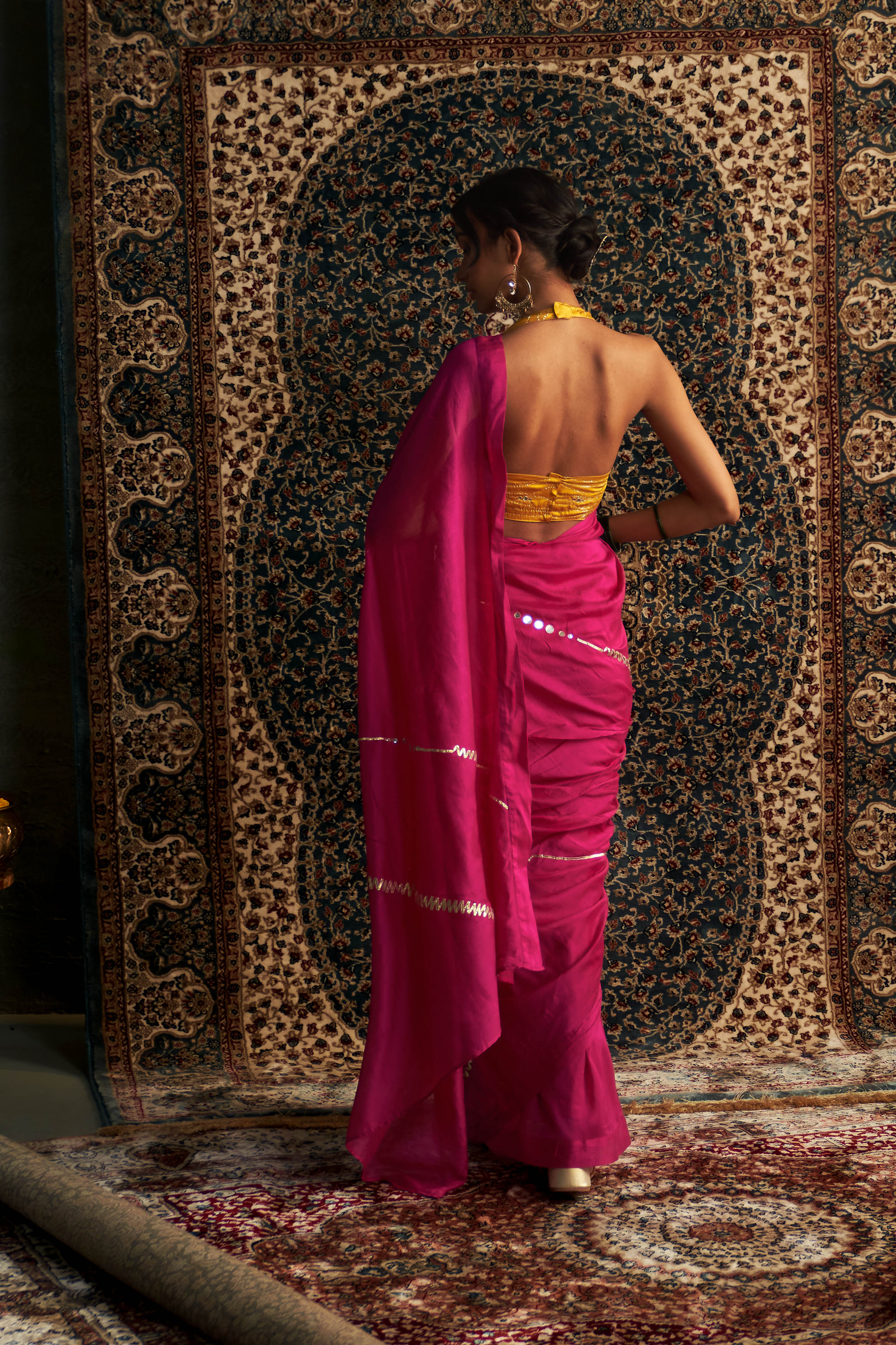 Prarambh Embroidered Chanderi Saree With Halter Neck Blouse