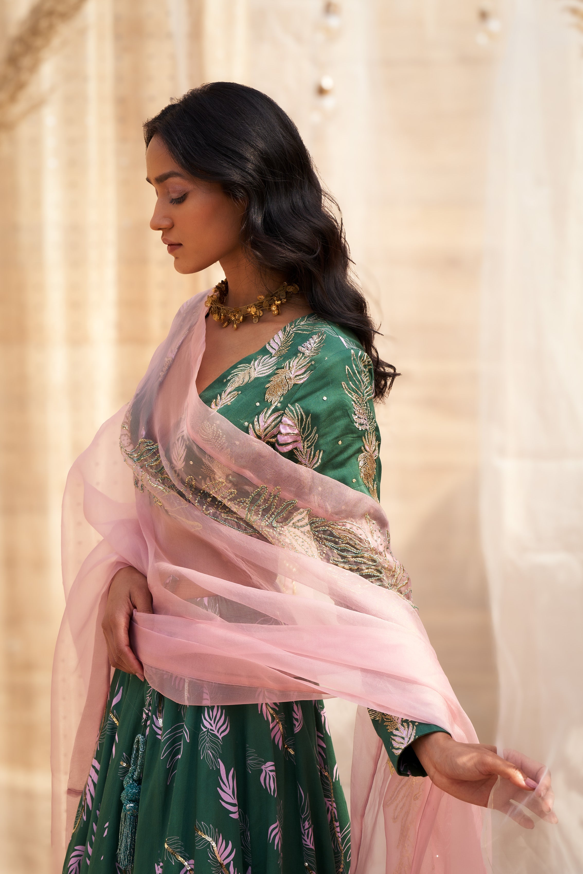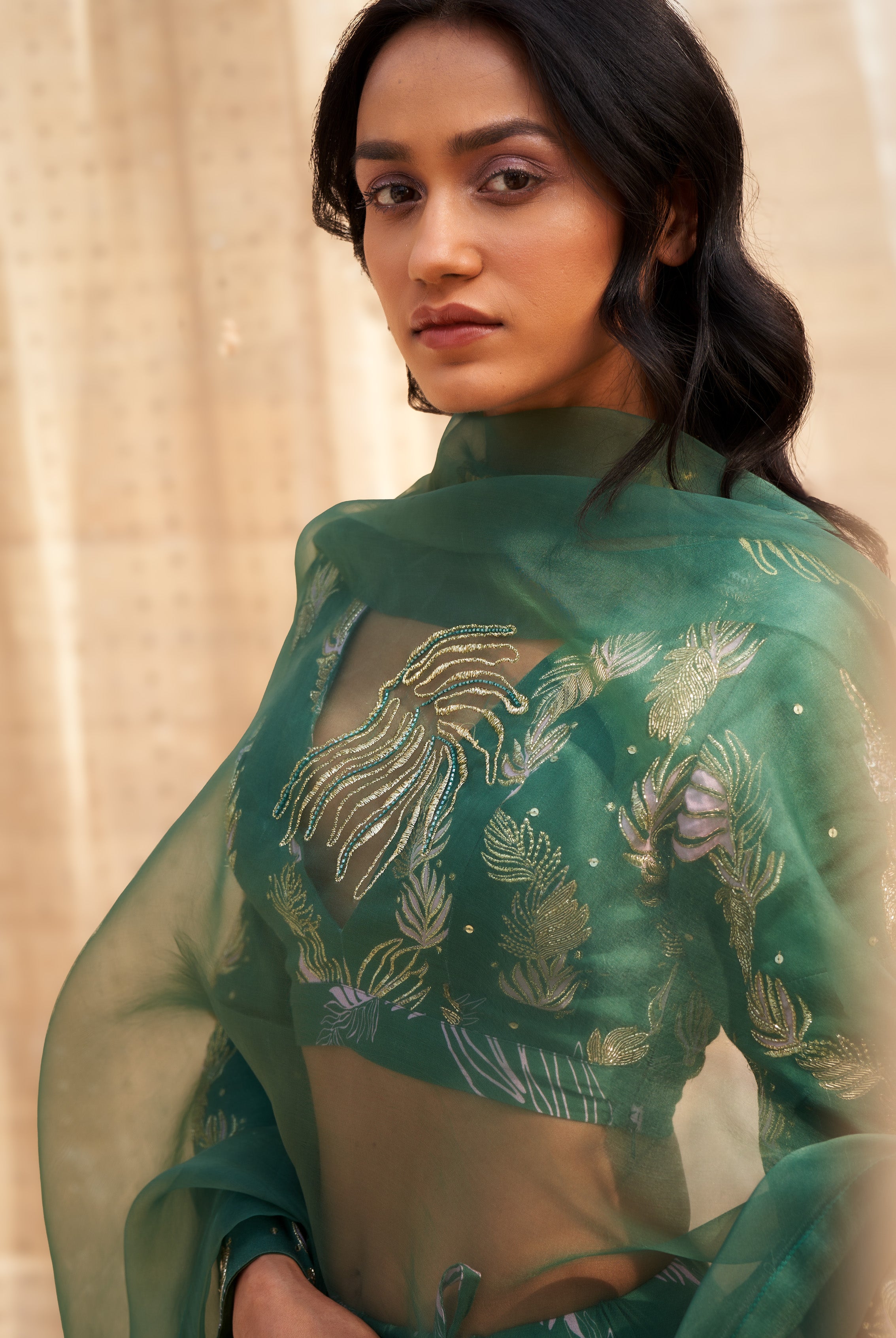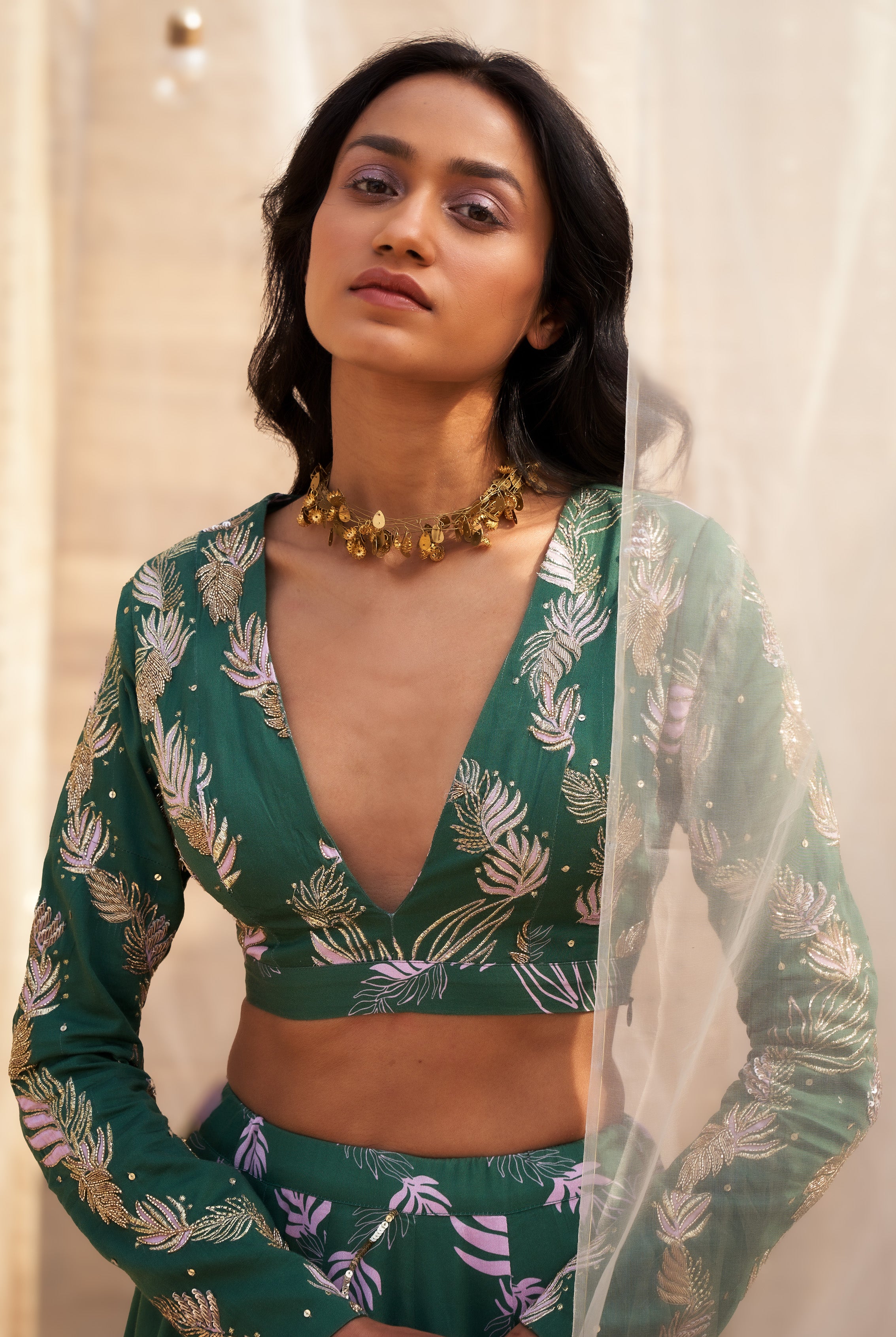 Collection elegantly blends nature's artistry with traditional craftsmanship, drawing inspiration from the grace of mulberry leaves and featuring intricate hand-embroidered Nakshi work in every piece.
