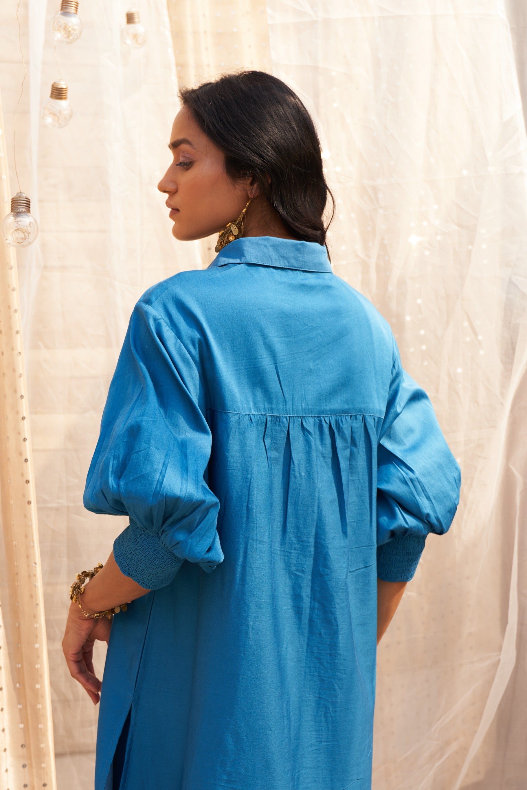 Redefine your elegance with this Charming Leaf-Print Co-ord Set, designed for modern elegance and sophistication. The kurta features a collared neckline and a front-buttoned design, adding a structured and contemporary appeal. Delicate Zari-highlighted motifs enhance the charm, making it perfect for special occasions. Unique smocking details on the sleeve cuffs add a playful yet refined touch, while the hi-lo kurta panels bring movement and flair to the outfit. Paired with flared pants, this ensemble offers a comfortable yet chic silhouette. Accessorize with statement jewelry and heels for a polished look that stands out.