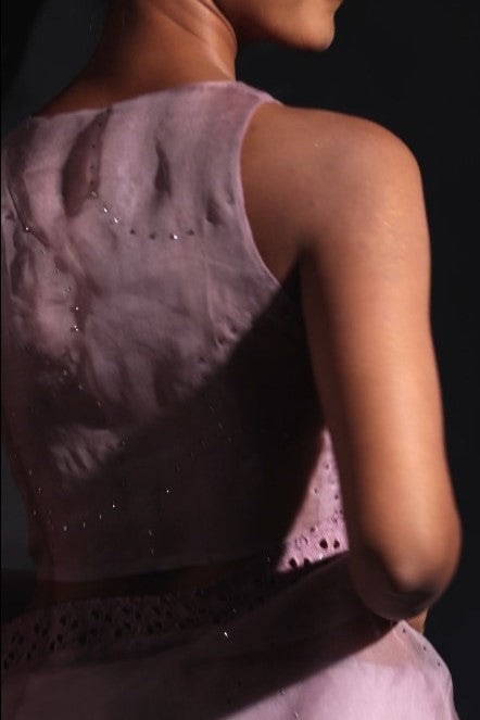 Swarovski Berry Mauve Organza Saree - Set of 2