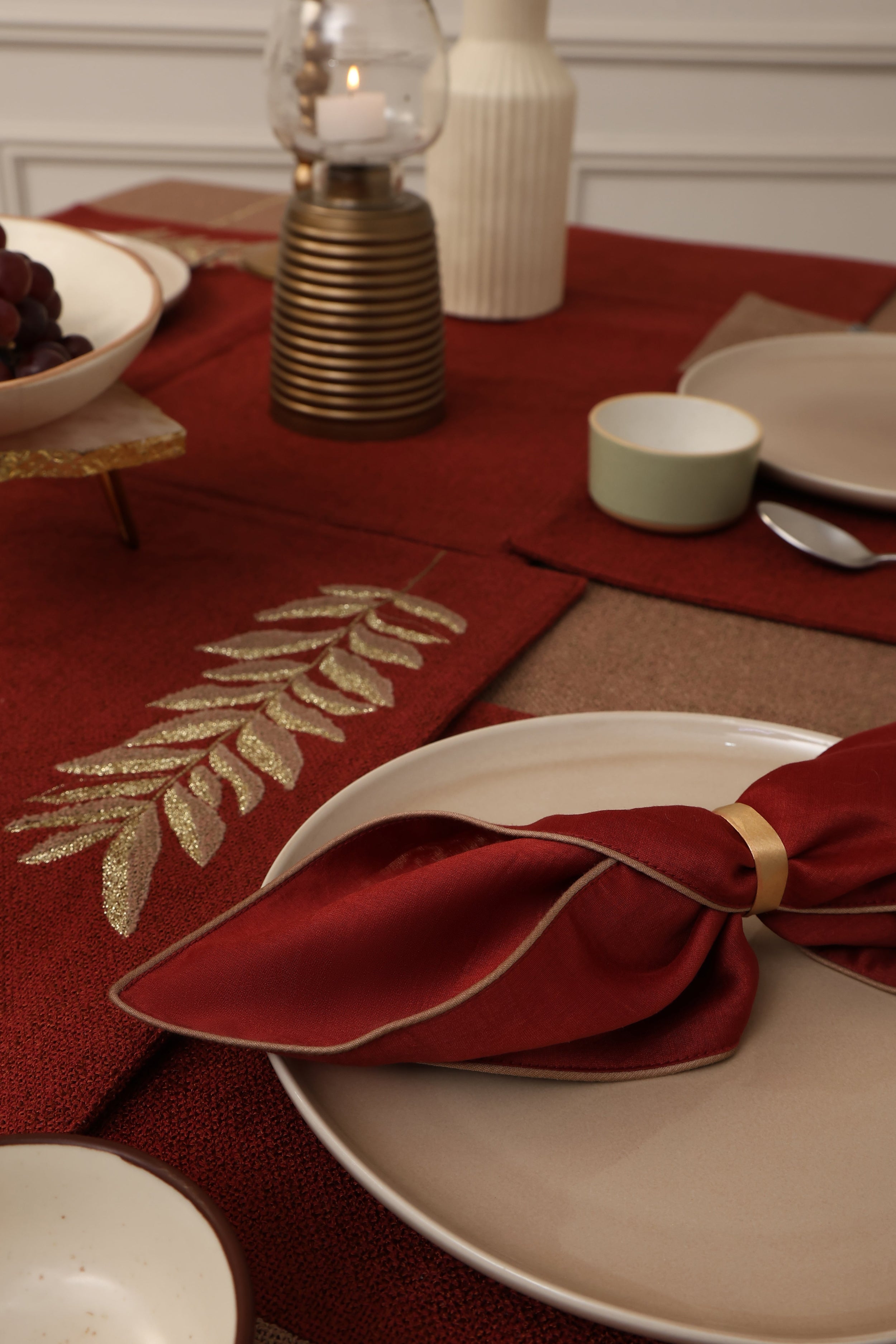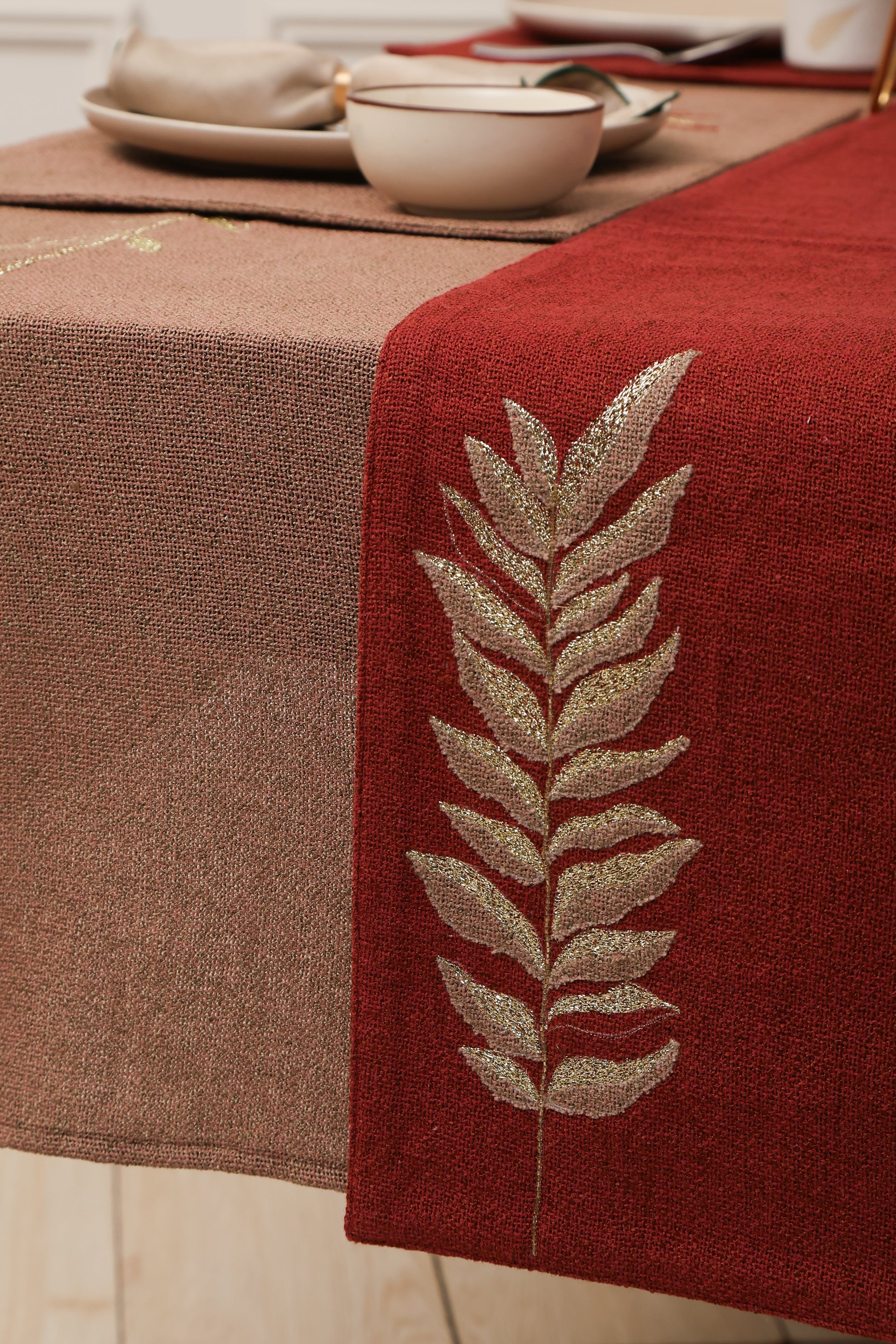 A refined table runner adorned with delicate leaf-branch embroidery along both edges, bringing natural elegance and charm to your setting