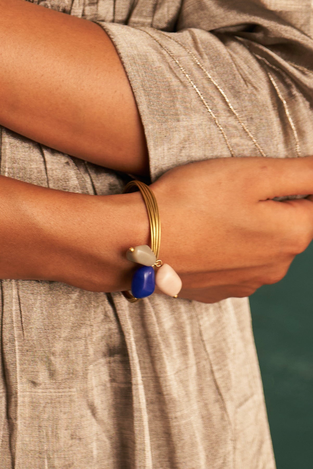 Combining modern design with a folk charm, this wired bracelet adds a unique character to the bracelet. Highlighted with colorful hanging beads that add a pop of color to your look. Set of 1