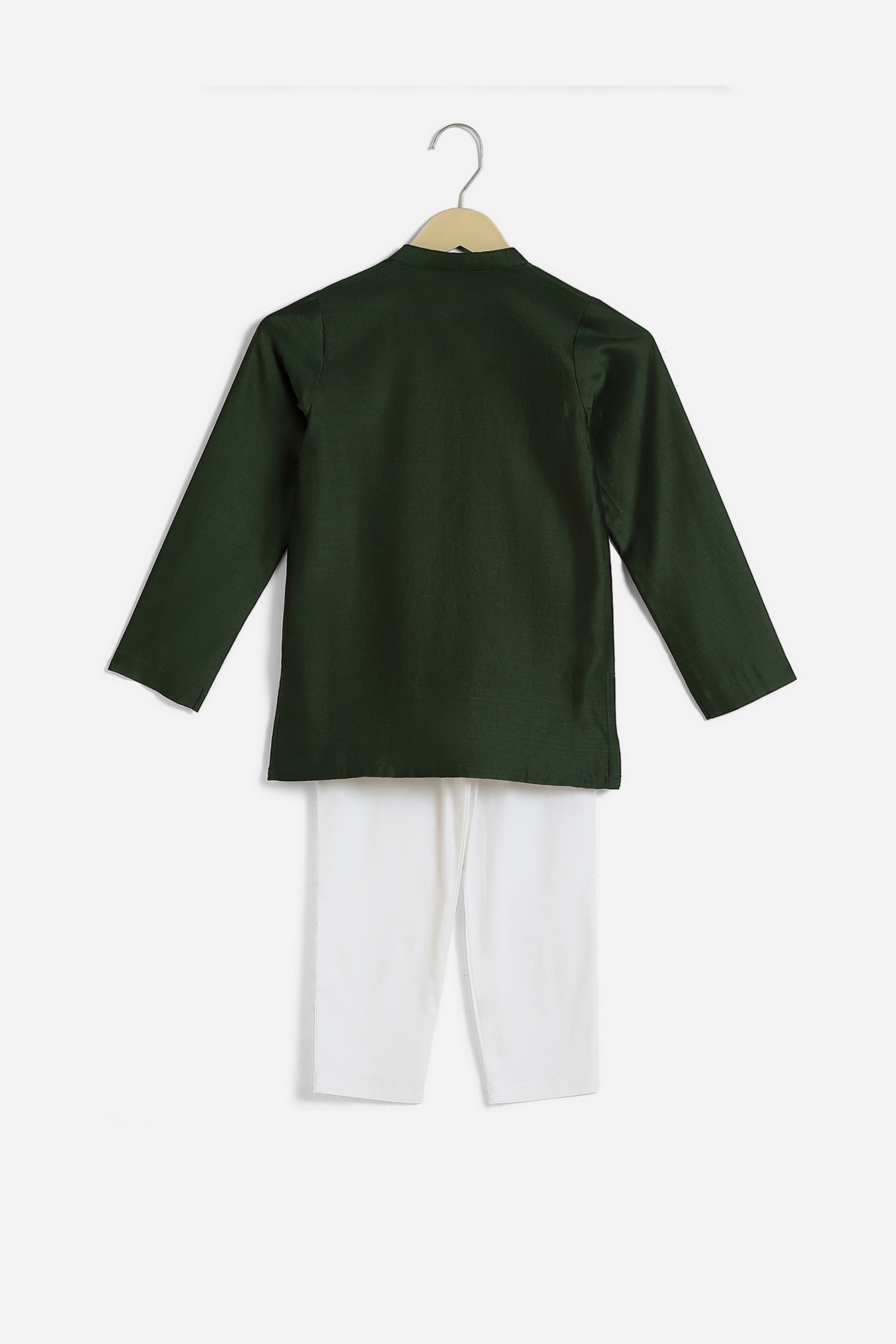 Get ready to sparkle at the festivities with this Chanderi Kurta with a soft cotton lining, teamed up with comfy white elasticated stretch pyjamas (optional) that move with your little one. Extra coziness, this set is perfect for your trendy kiddo. Let the festive fun begin!