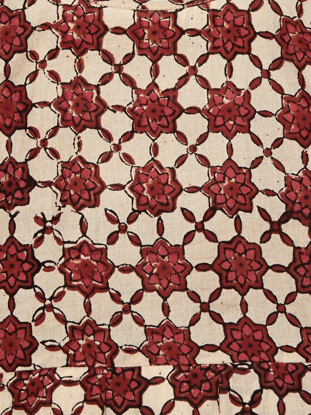 - unique, hand block motifs created by Indian artisans